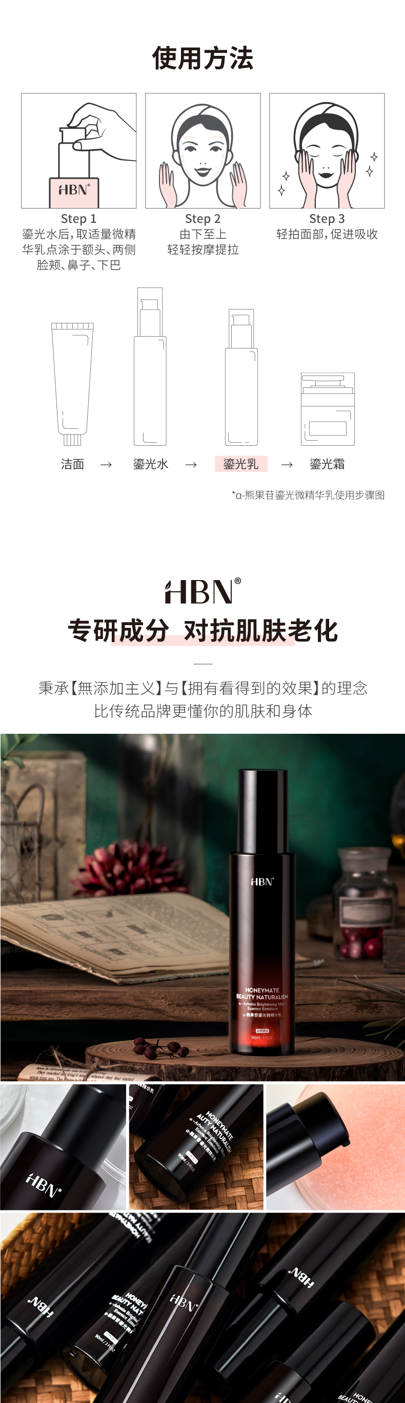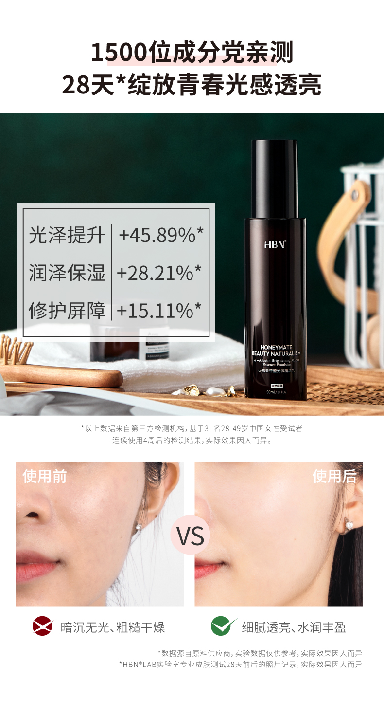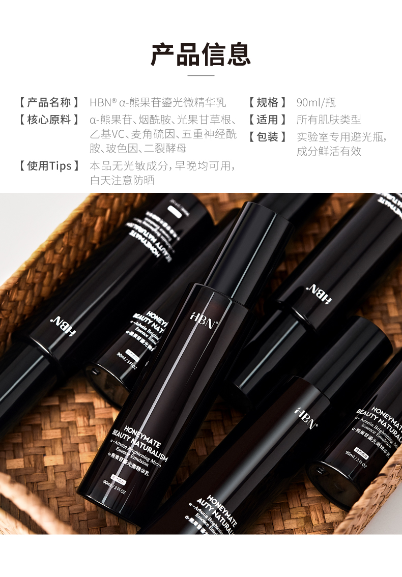 商品名称:HBN·α-熊果苷鎏光微精华乳 90ml