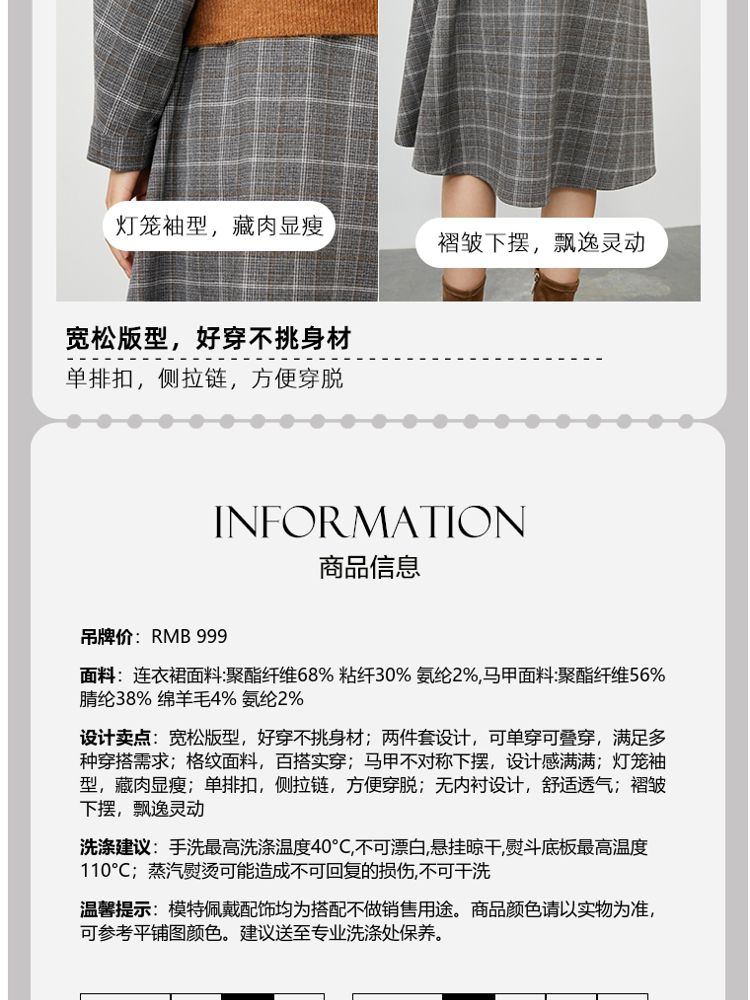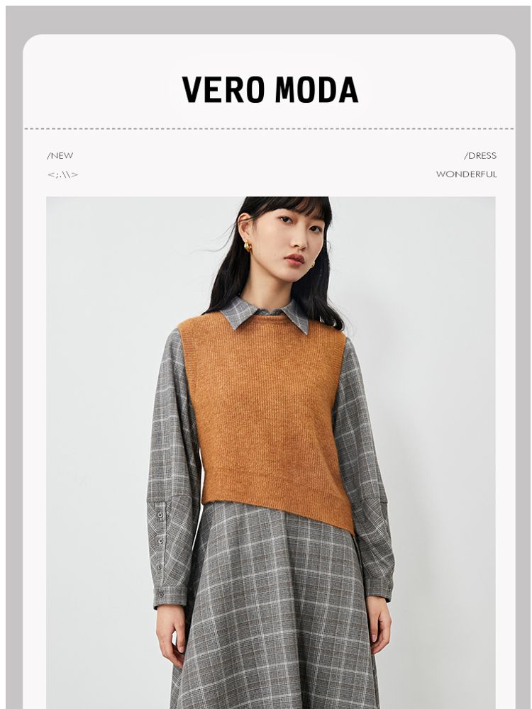 商品名称:【衬衫式针织马甲两件套】春夏一衣两穿专柜同款连衣裙百搭时尚 509713