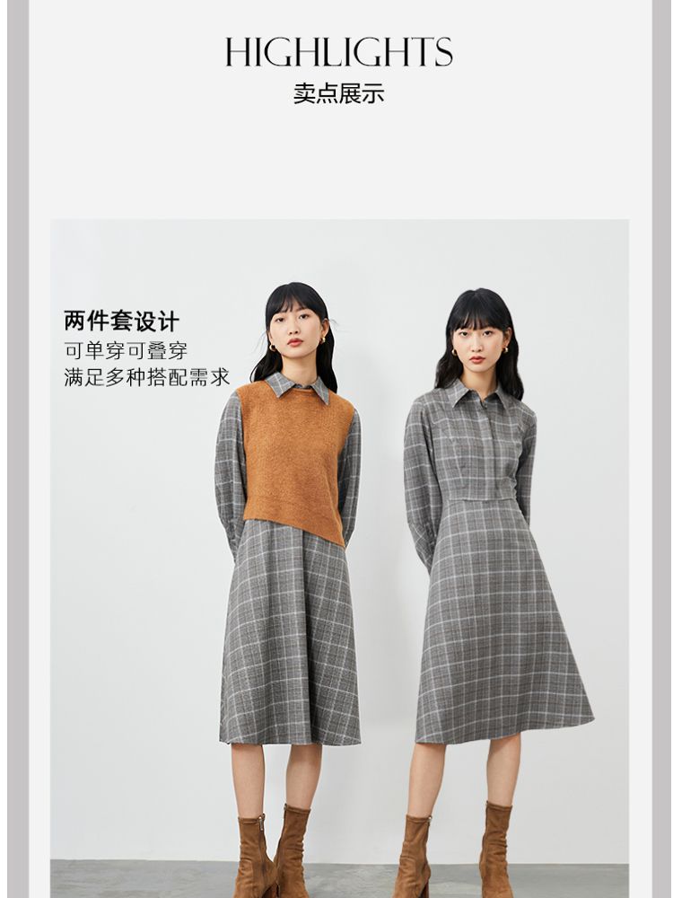 【衬衫式针织马甲两件套】春夏一衣两穿专柜同款连衣裙百搭时尚 509713