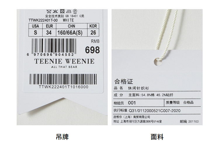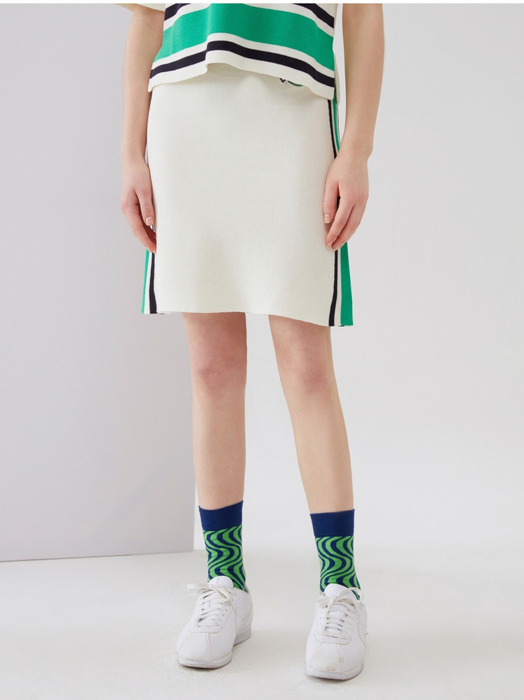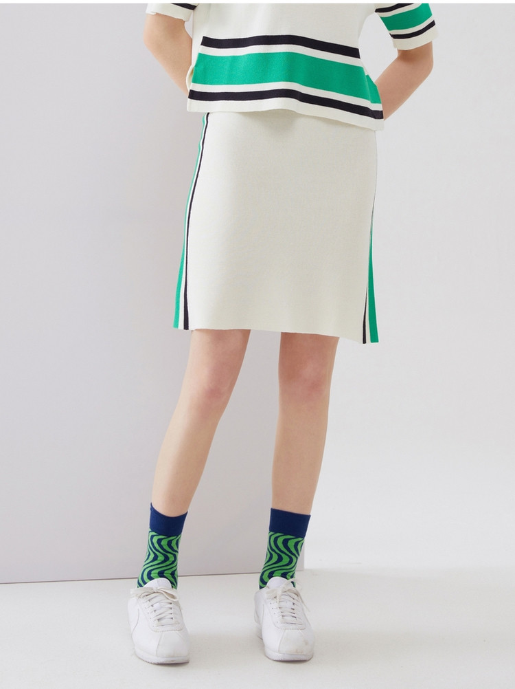 商品名称:小熊撞色针织半身裙高腰气质短裙裙子女装设计感小众 777409
