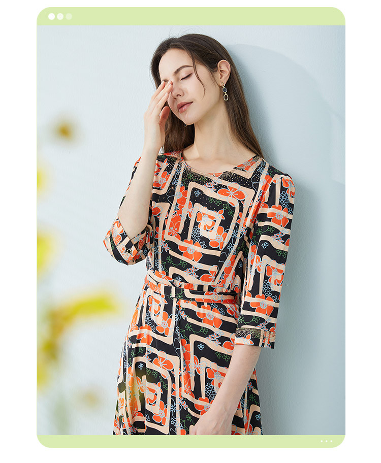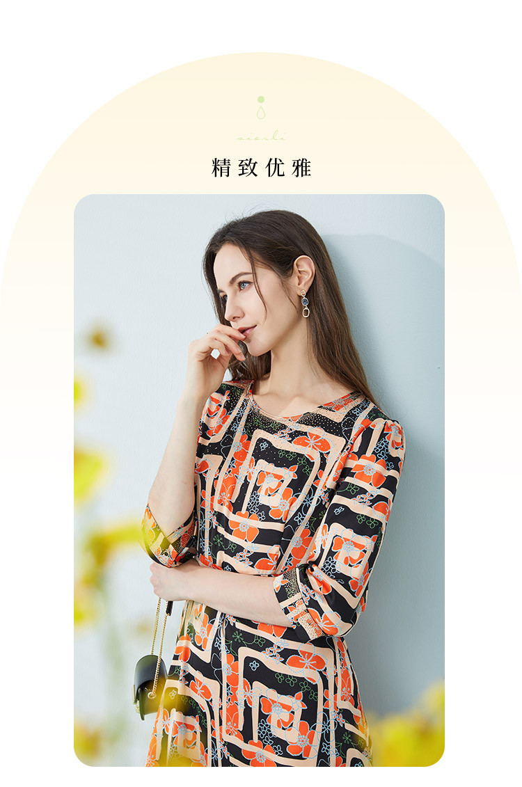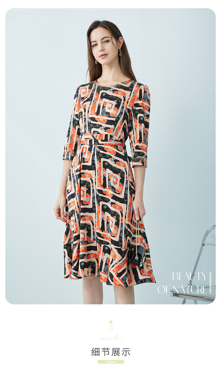 商品名称:[商场同款]秋季欧美风法式印花复古撞色圆领鱼尾摆连衣裙 313247