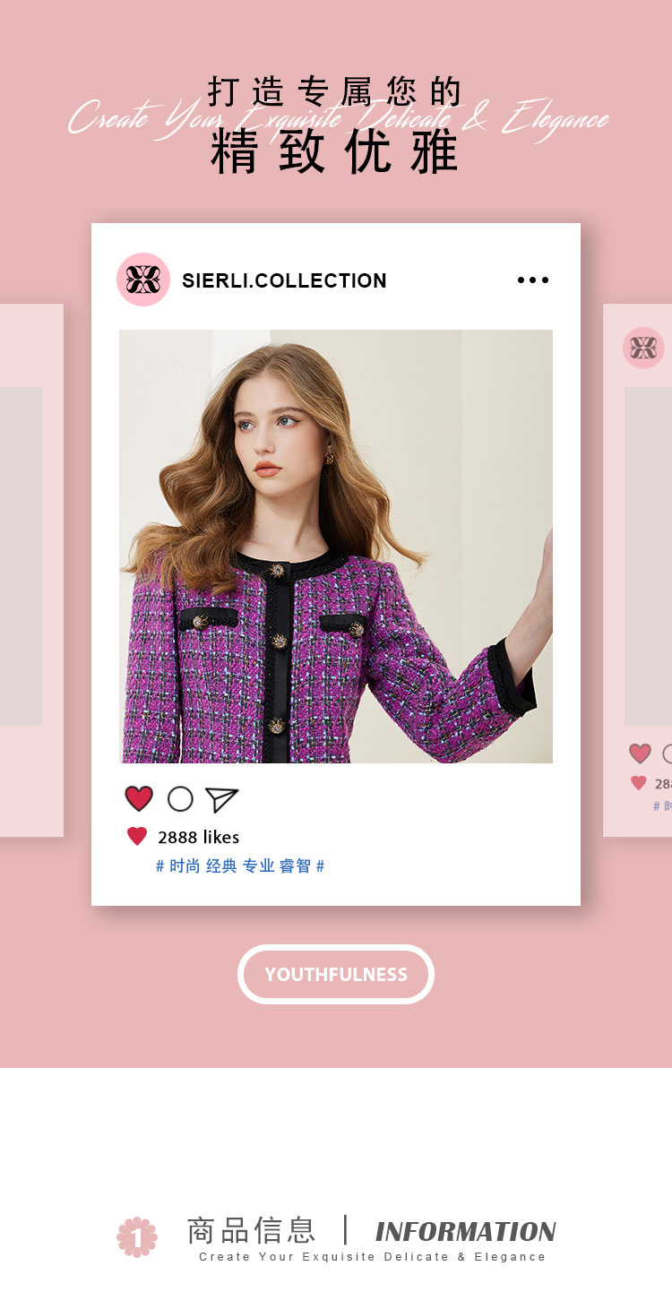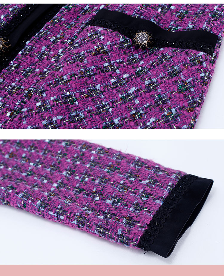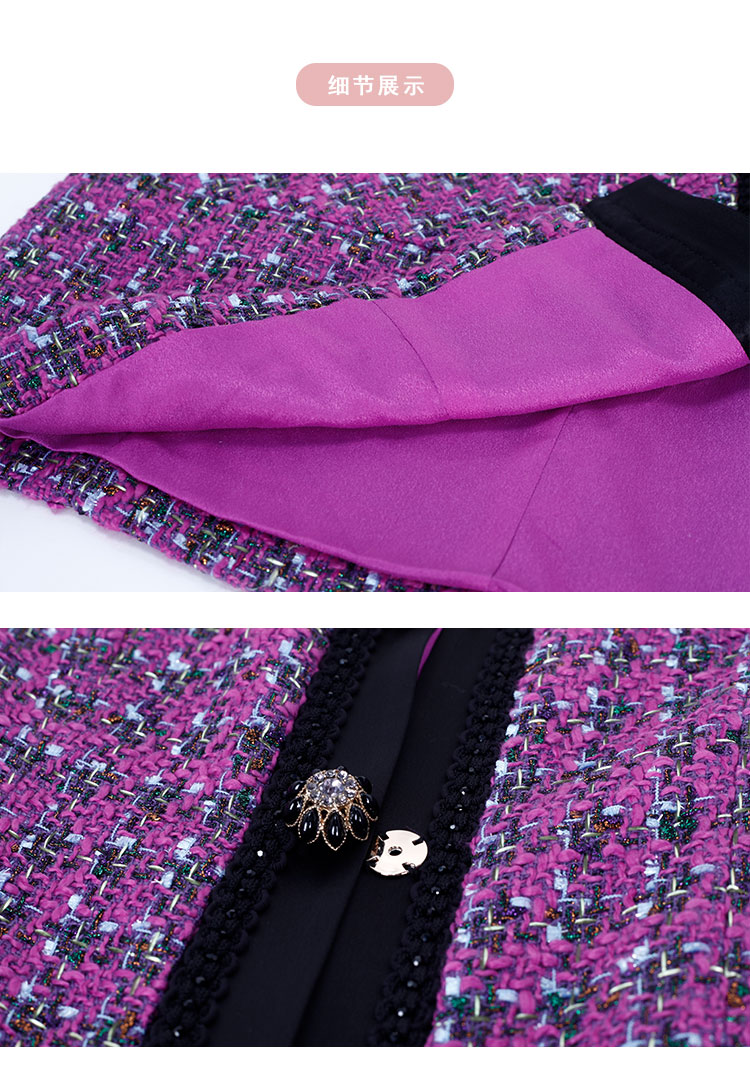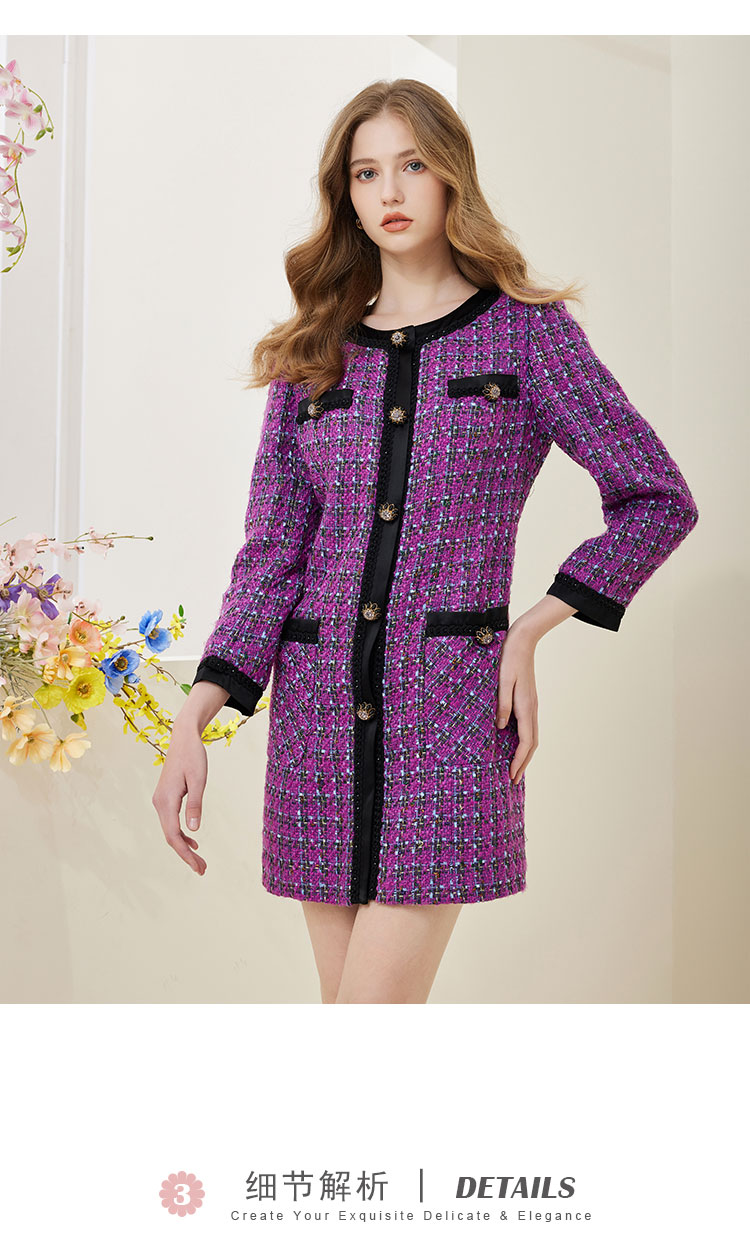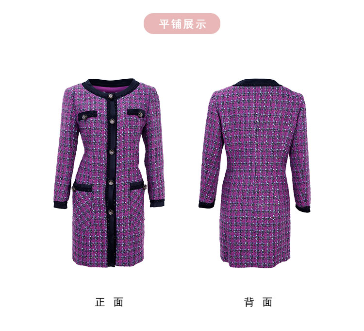 商品名称:商场同款精致撞色纽扣式时尚格纹小香风长款外套女式优雅 752095