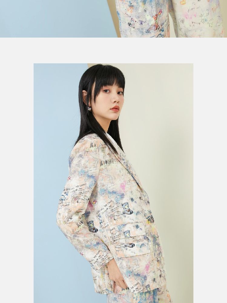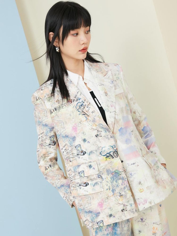 商品名称:【福利特卖款】春夏复古涂鸦风直筒休闲西装外套气质百搭时尚 307025