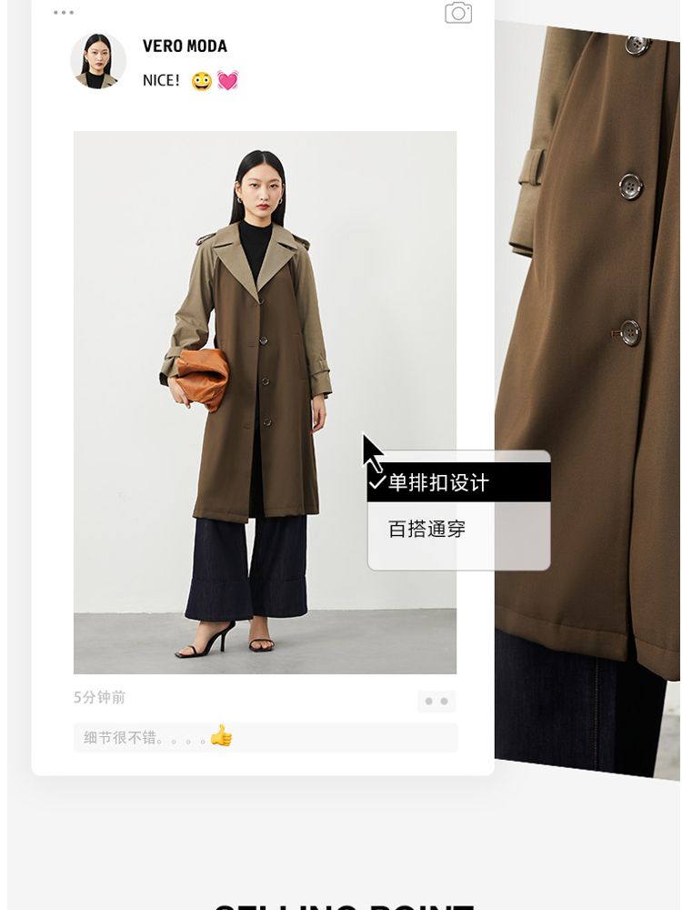 商品名称:【春夏美拉德】【春夏款】翻领H版型收腰风衣外套女气质百搭时尚 956305
