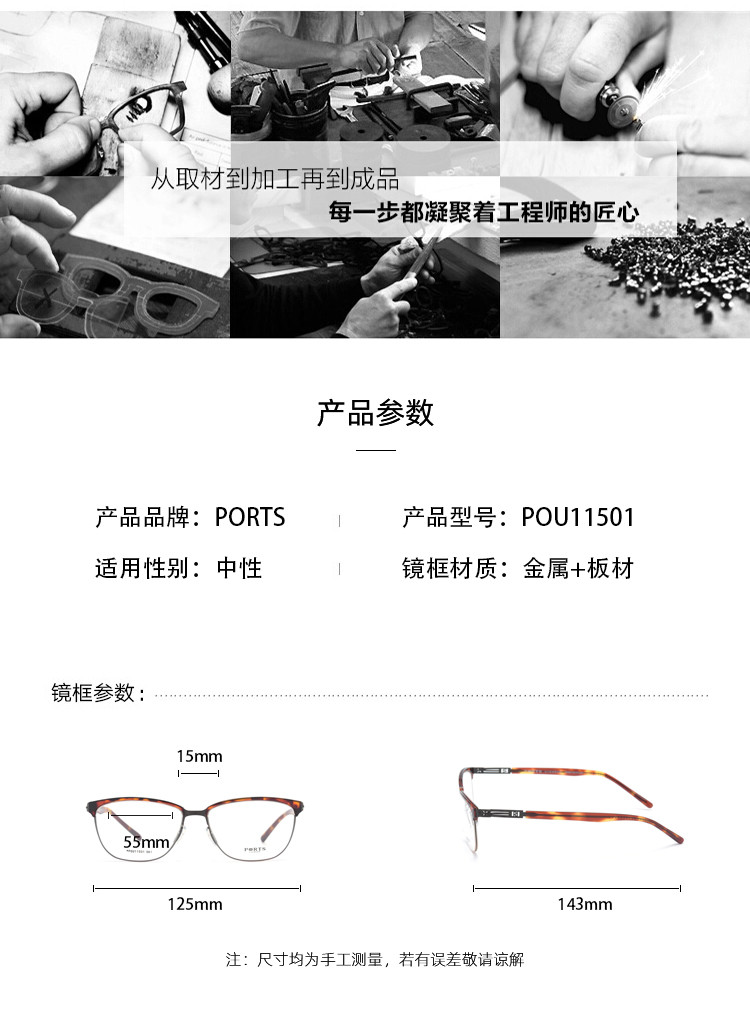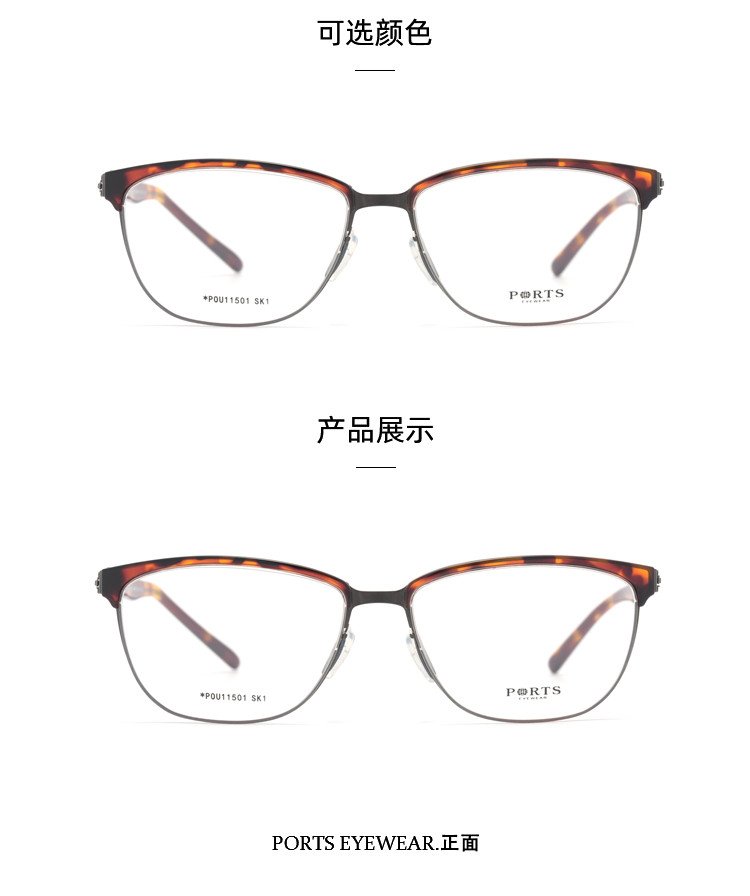 PORTS女款时尚百搭气质优雅椭圆眼镜架POU11501 745546