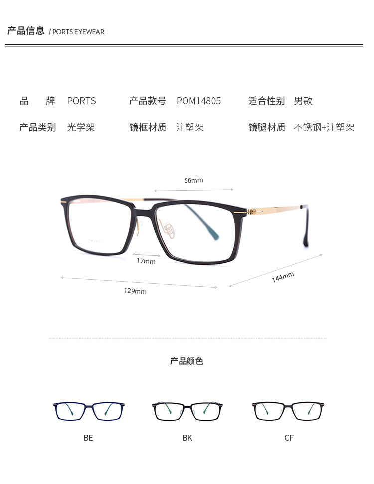 商品名称:PORTS眼镜男款经典休闲百搭眼镜架光学架POM14805 610506