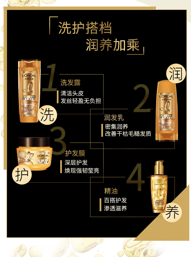 商品名称:L'oreal/欧莱雅 精油润养洗发露 400ml/500ml/700ml