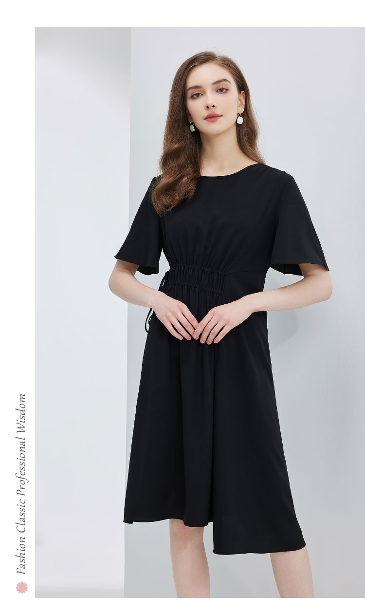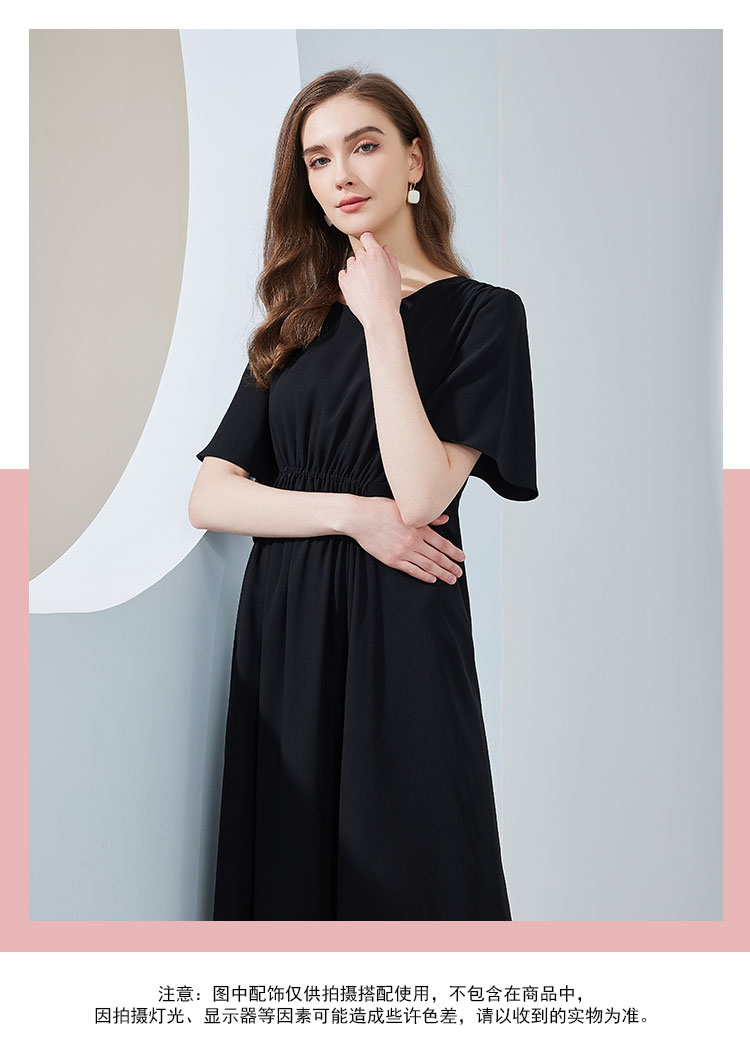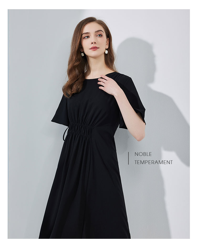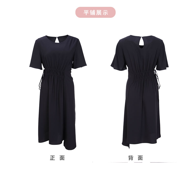 商品名称:夏季通勤休闲腰部抽皱不规则连衣裙气质显瘦A摆裙 490847