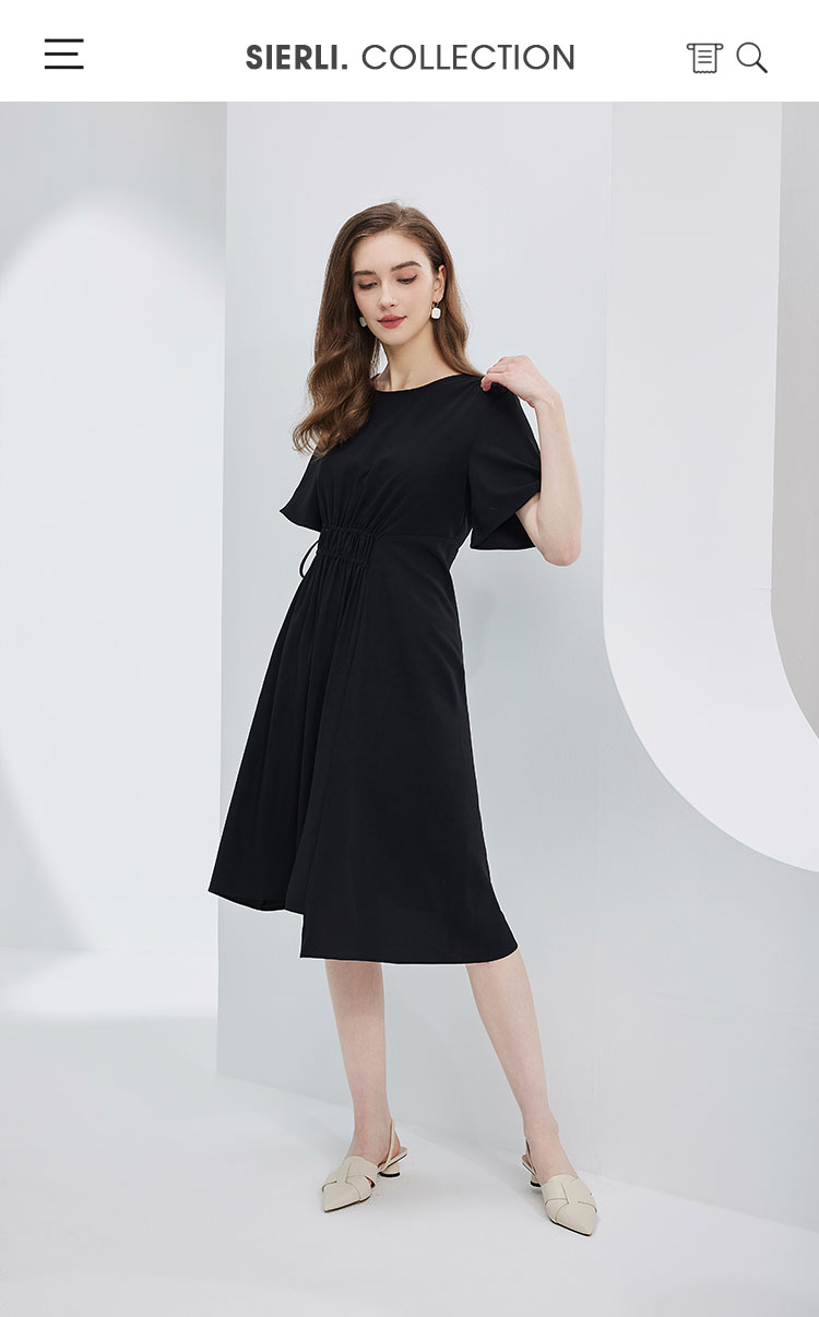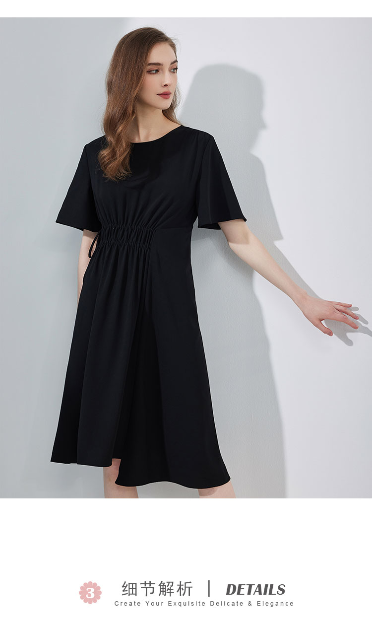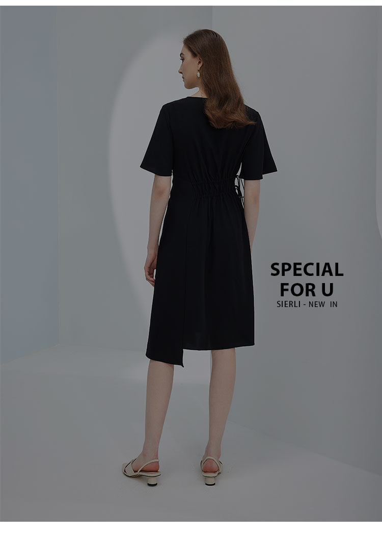 夏季通勤休闲腰部抽皱不规则连衣裙气质显瘦A摆裙 490847