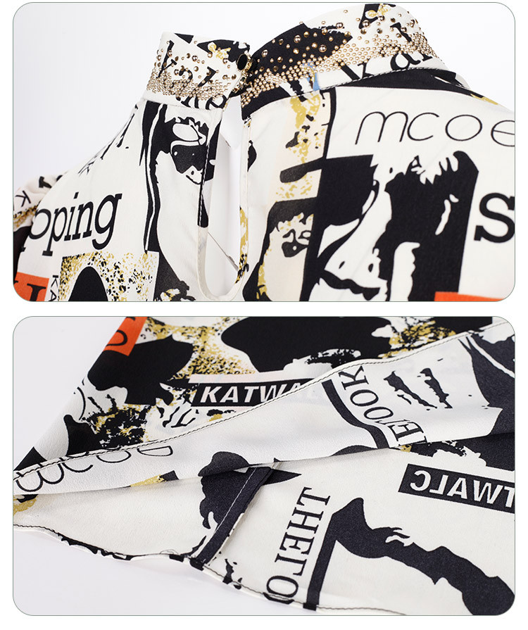 商场同款秋季优雅飞马撞色印花气质翻领烫钻5分袖衬衣 177503