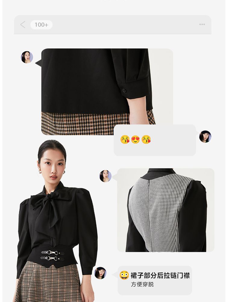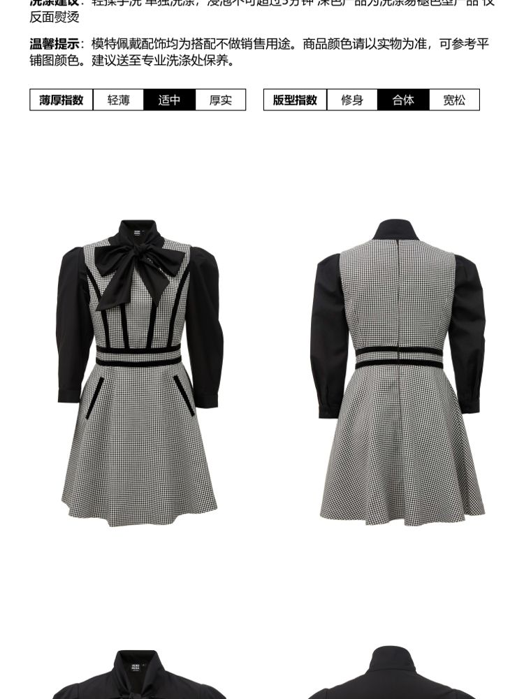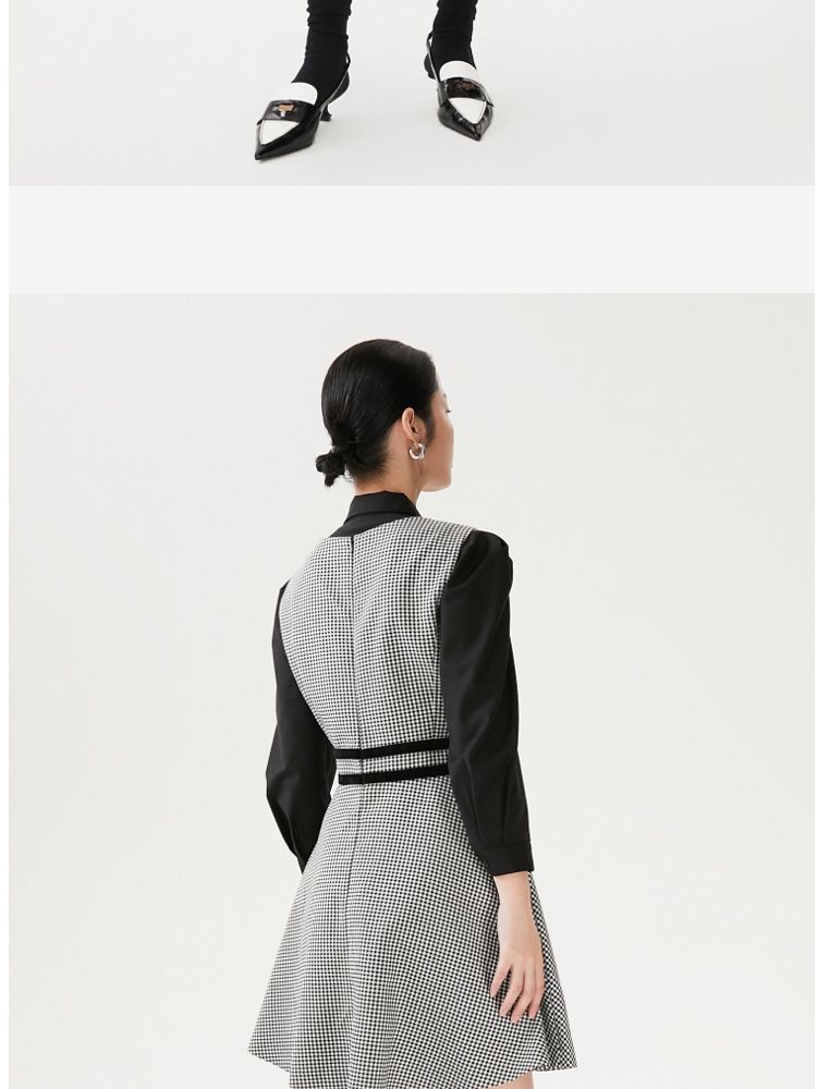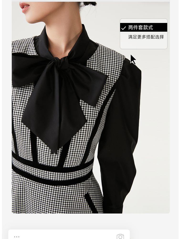 商品名称:【专柜同款】衬衫连衣裙甜美复古优雅修身千鸟格 413521