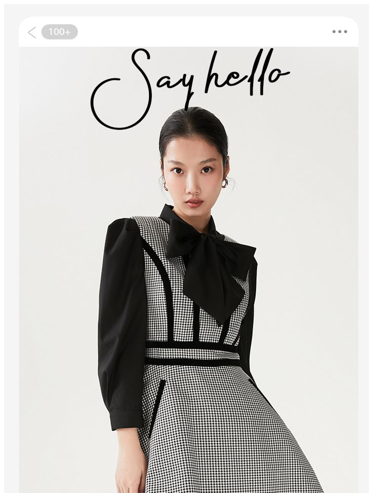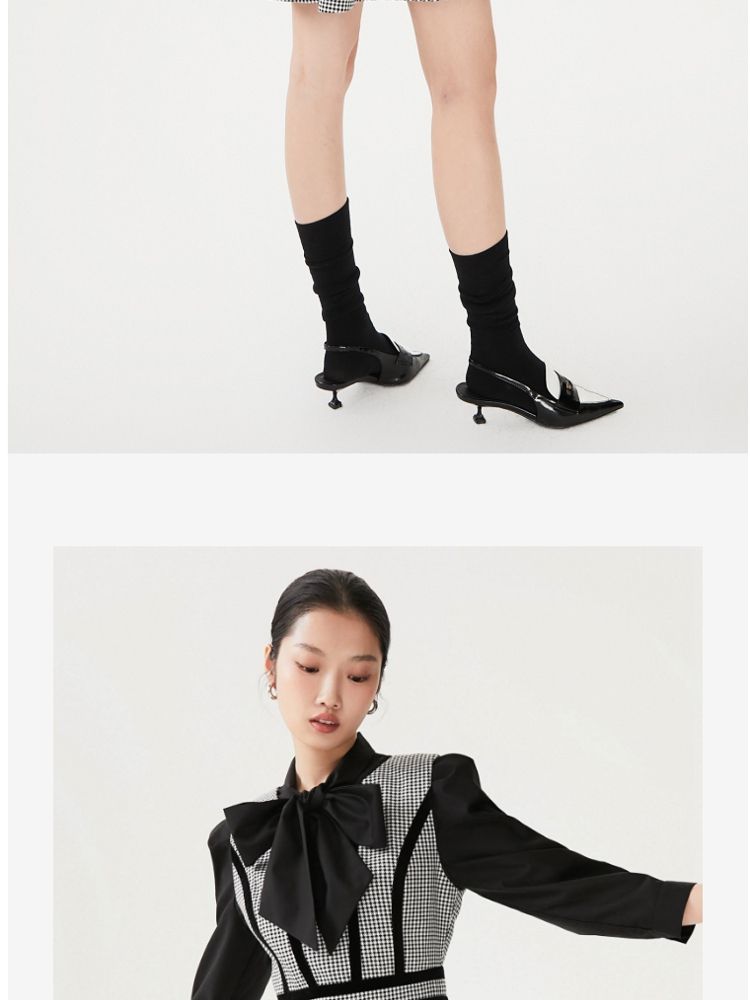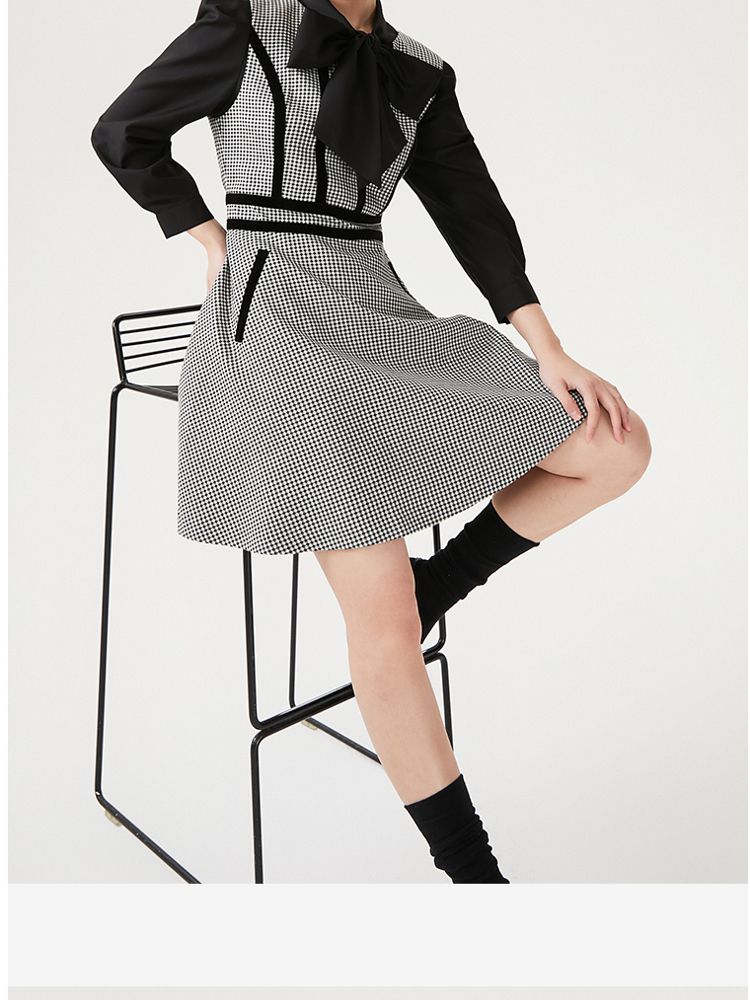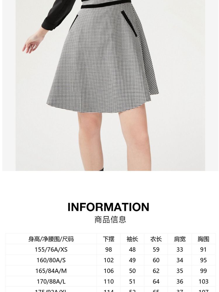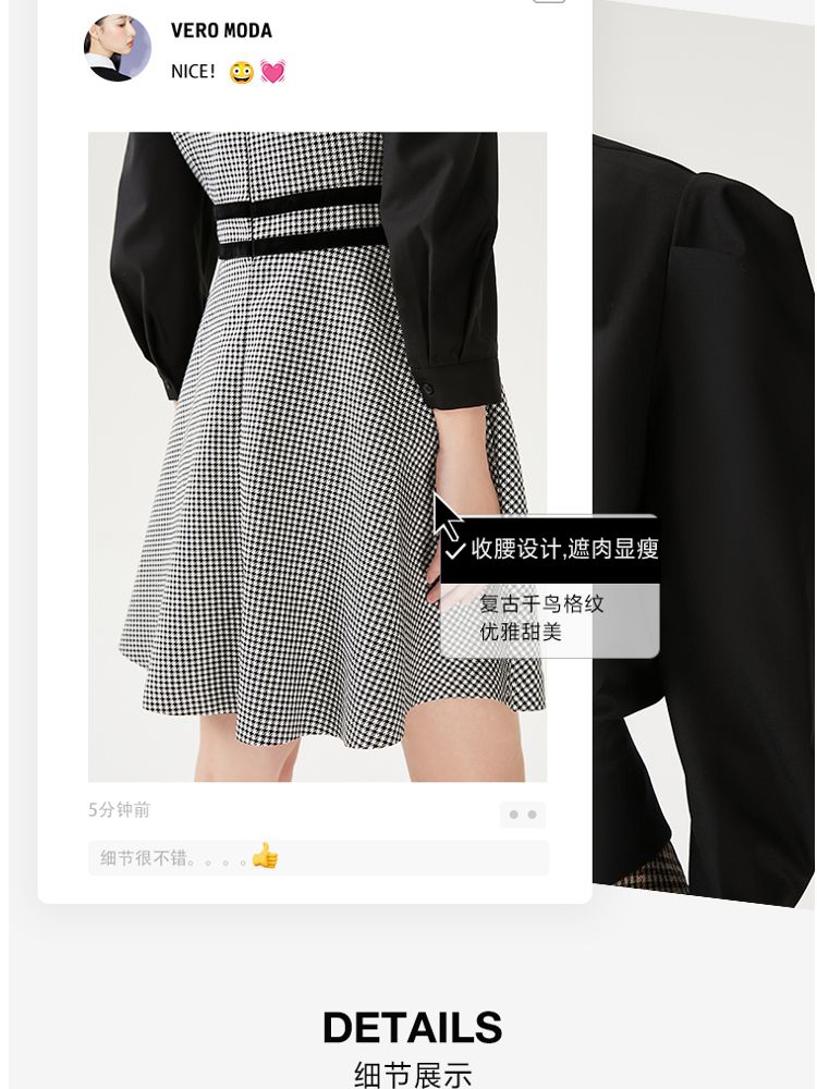 商品名称:【专柜同款】衬衫连衣裙甜美复古优雅修身千鸟格 413521