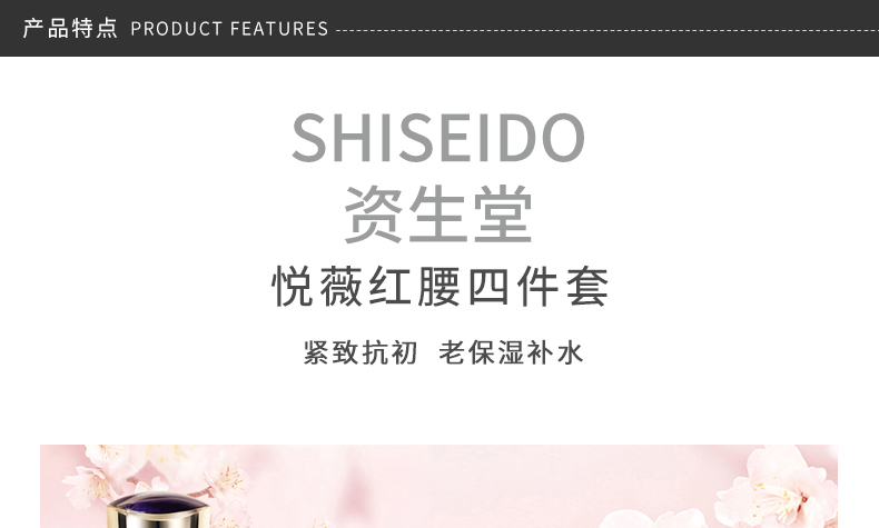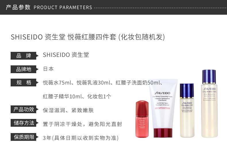 商品名称:Shiseido/资生堂 悦薇红腰子四件套 悦薇水75ml+悦薇乳30ml+洗面奶50ml+精华10ml