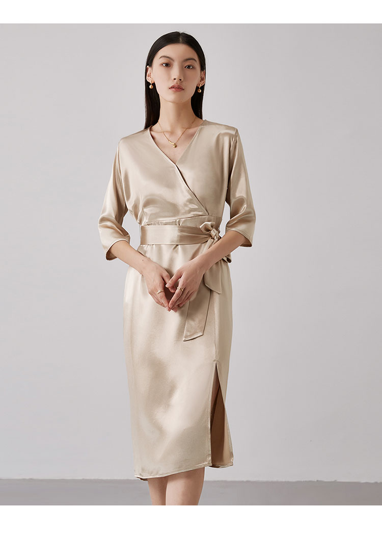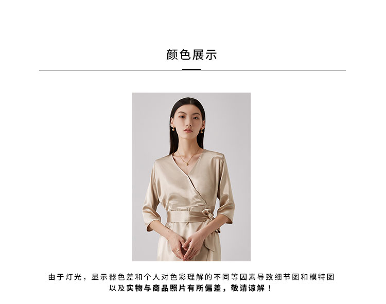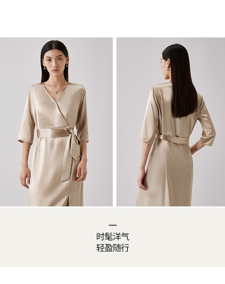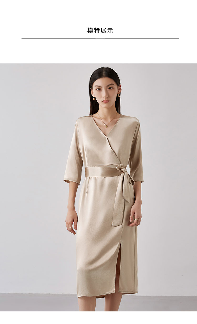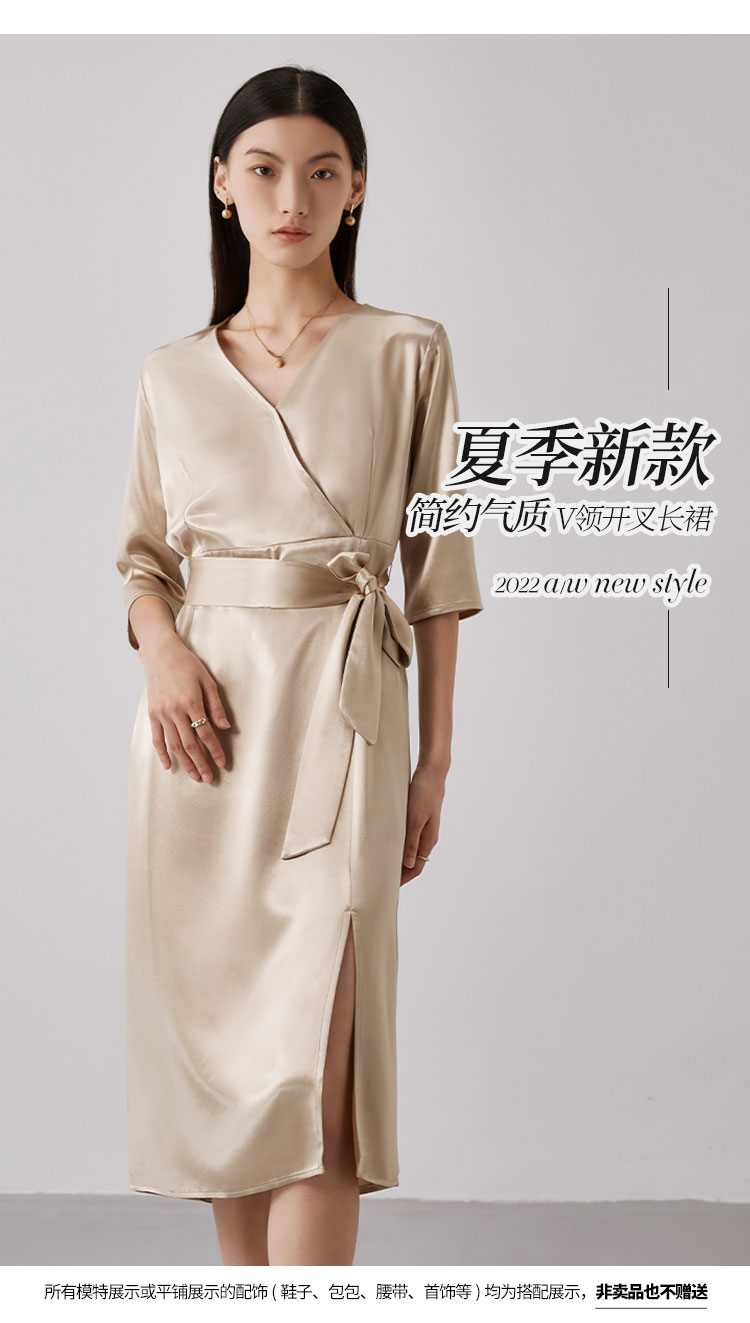商品名称:【醋酸连衣裙】夏季V领收腰系带裙子女休闲开叉长裙 185695