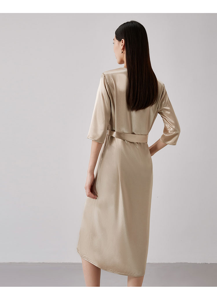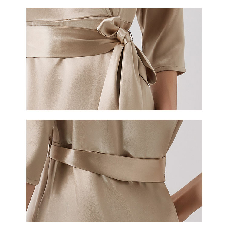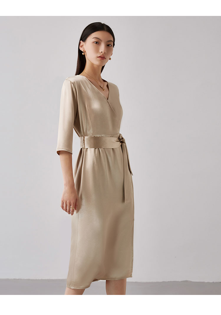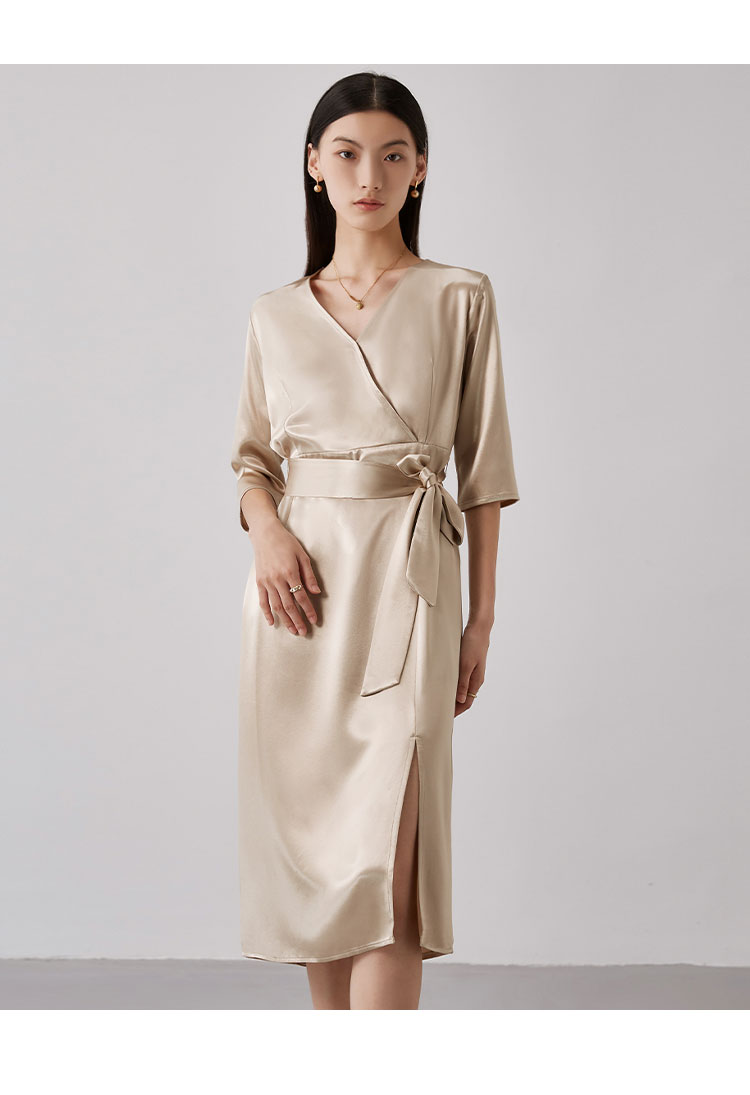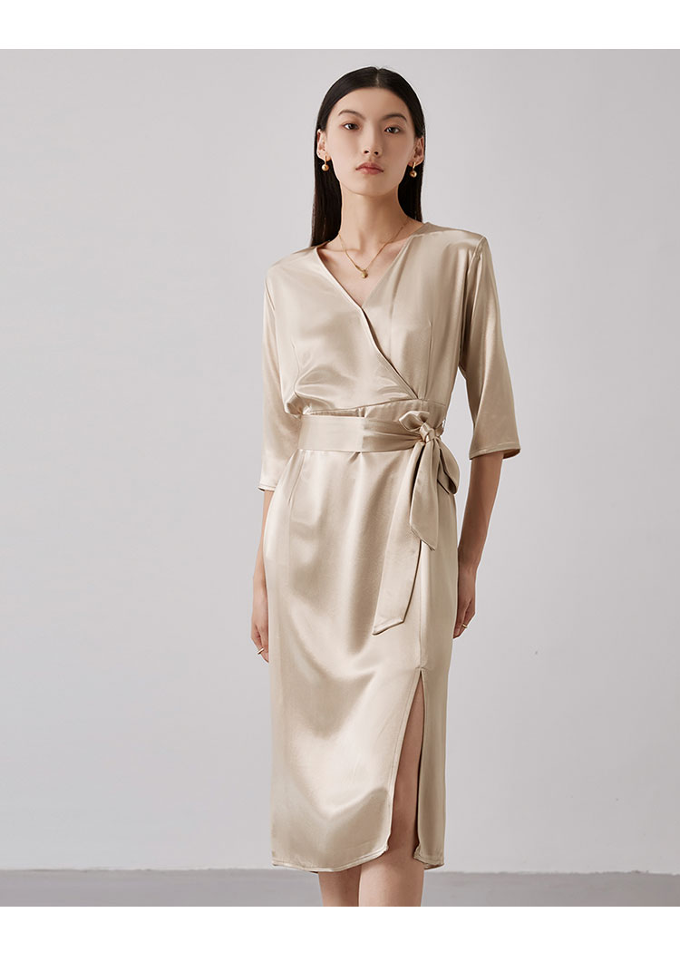 商品名称:【醋酸连衣裙】夏季V领收腰系带裙子女休闲开叉长裙 185695