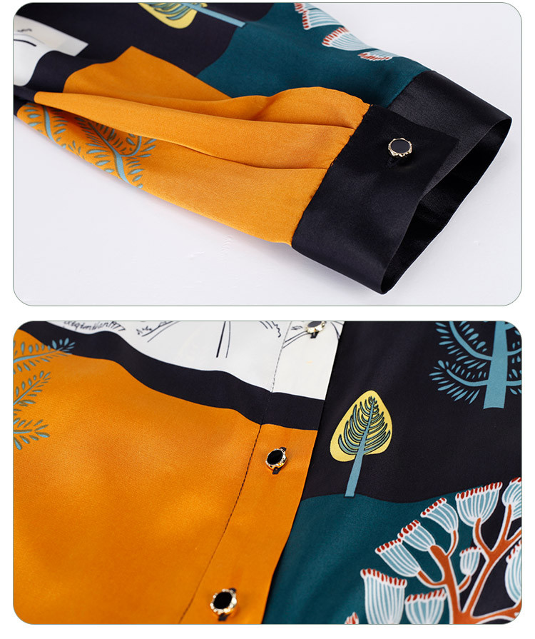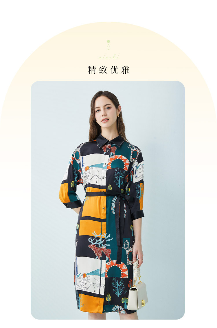 商场同款春季法式艺术涂鸦撞色衬衫领宽松系带式连衣裙 657375