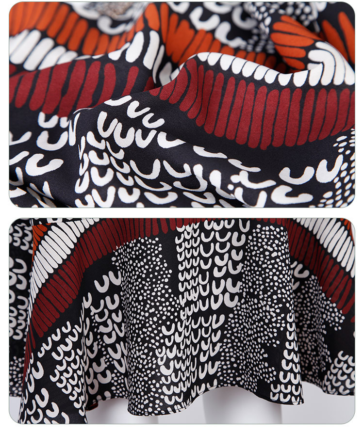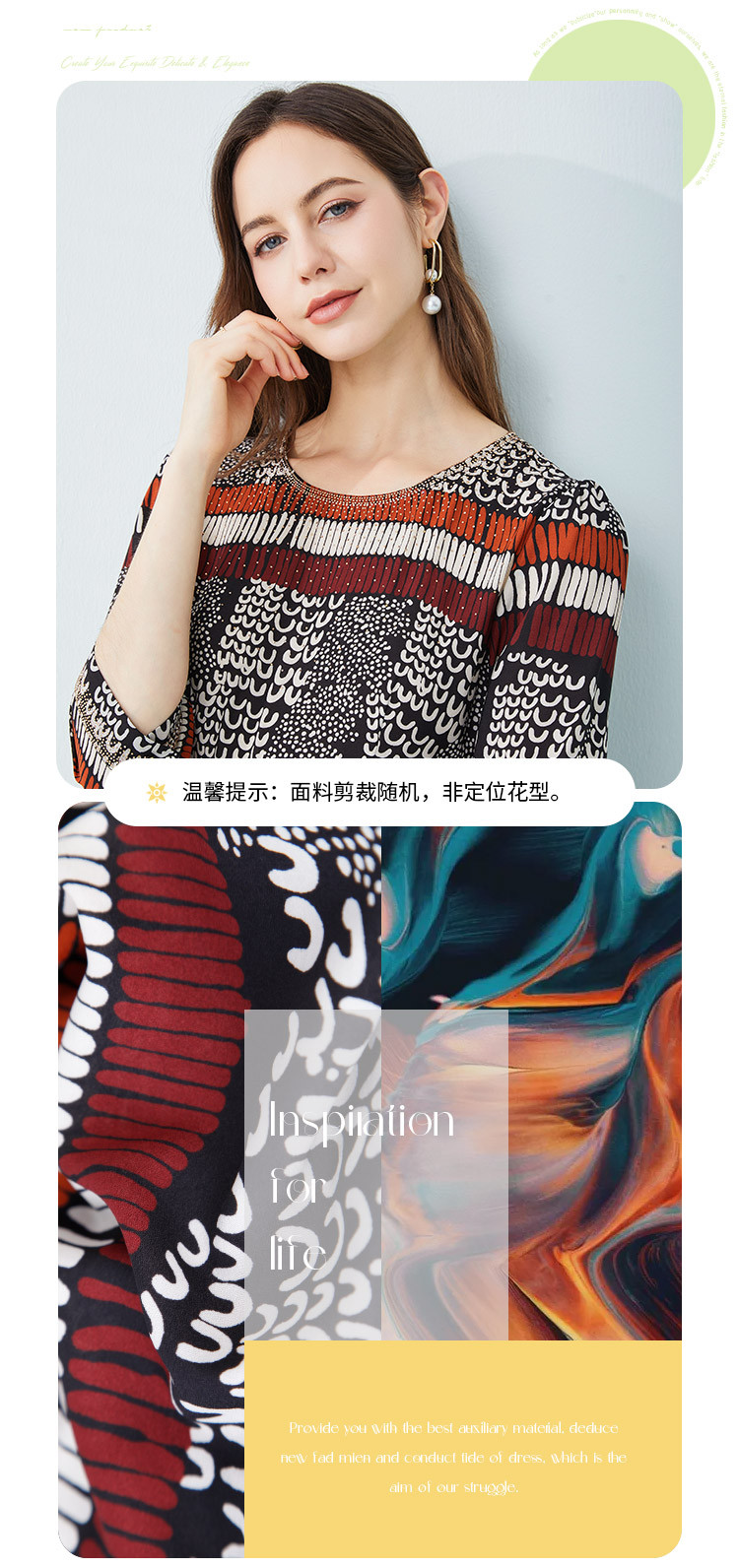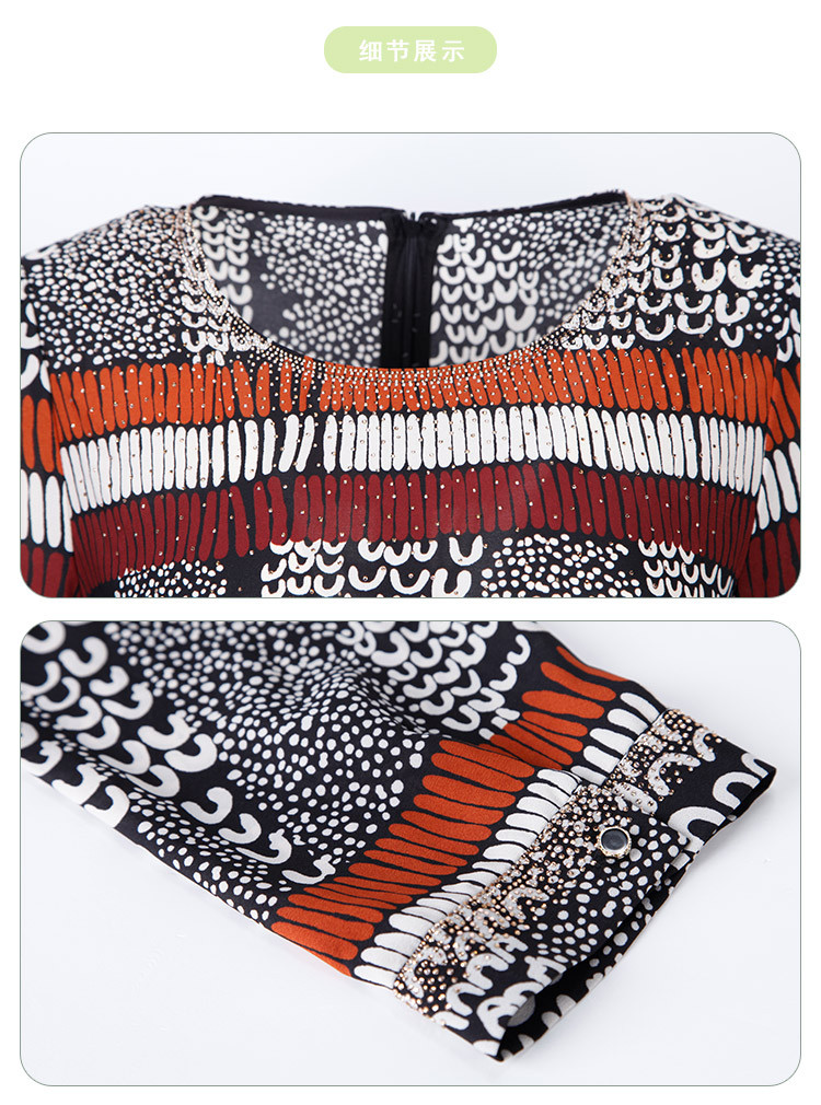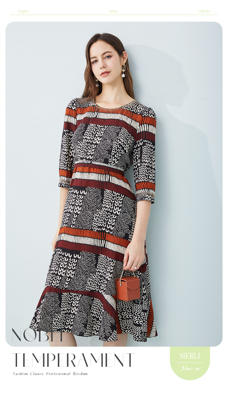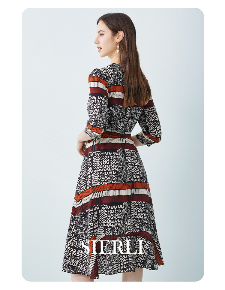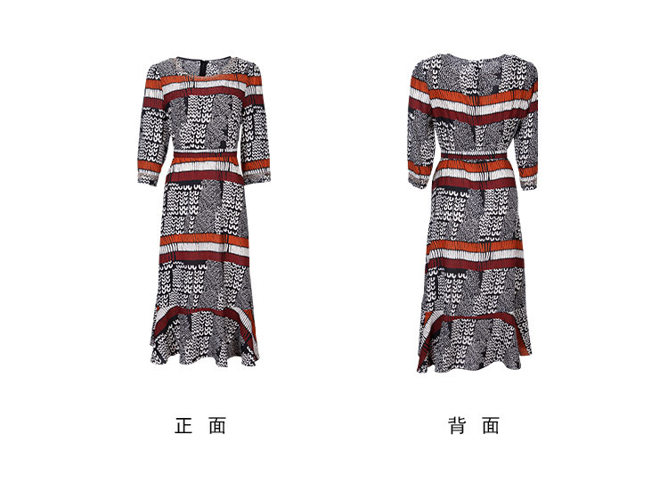 [商场同款]秋季复古撞色时髦感印花温婉鱼尾摆连衣裙 470495