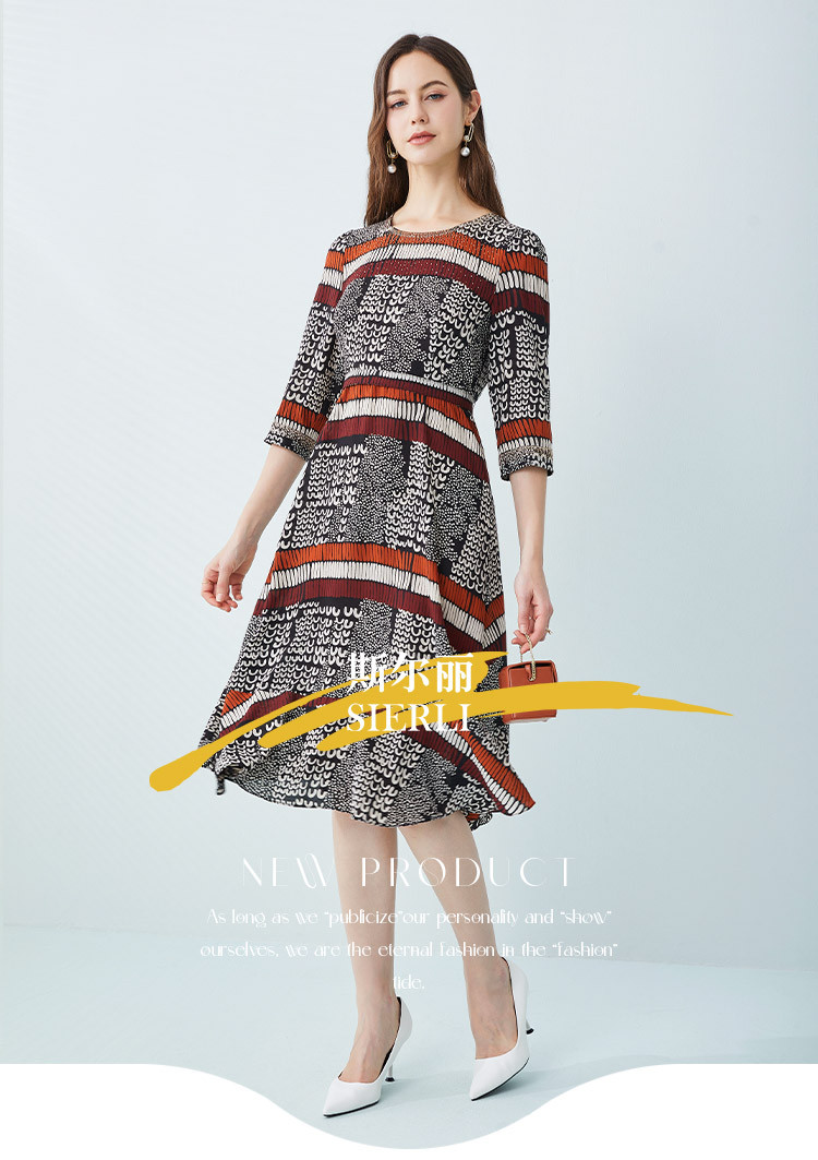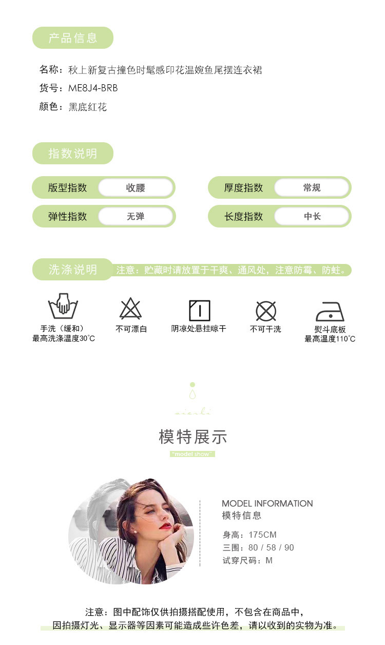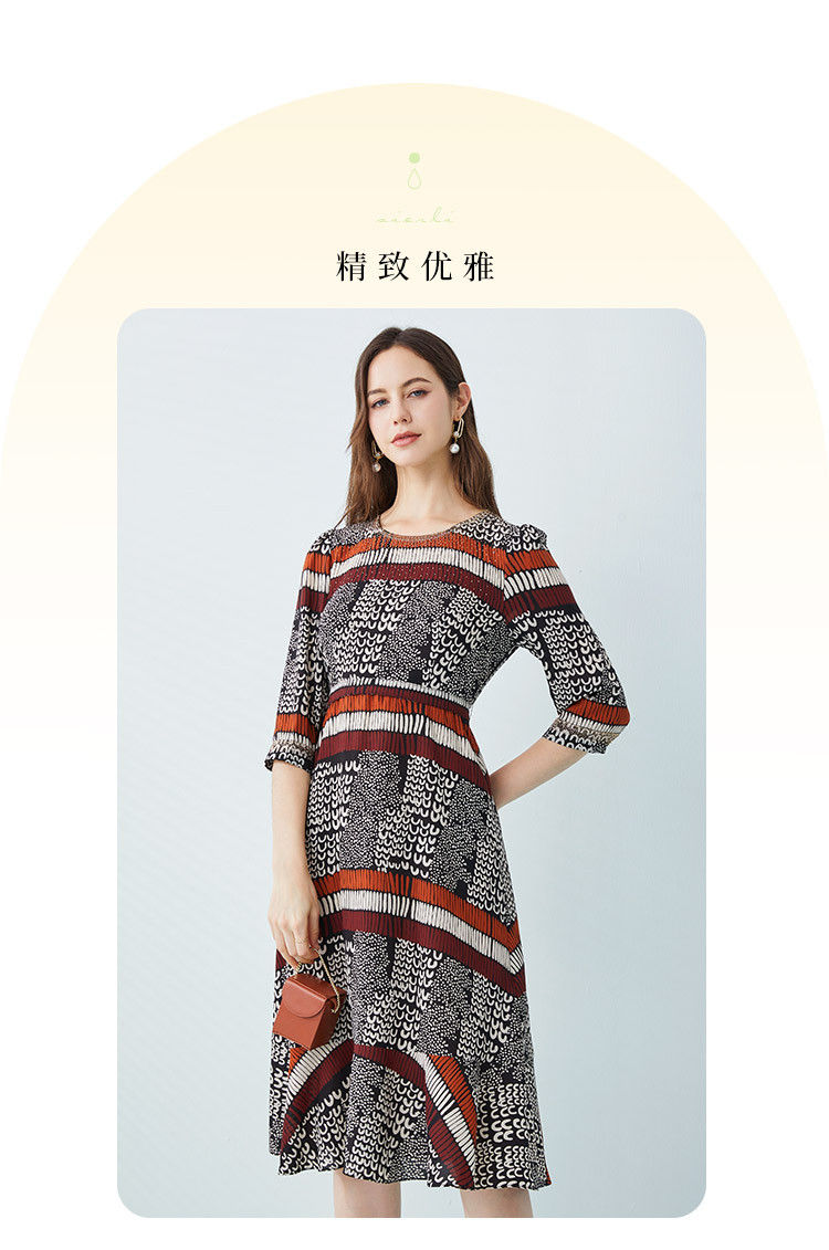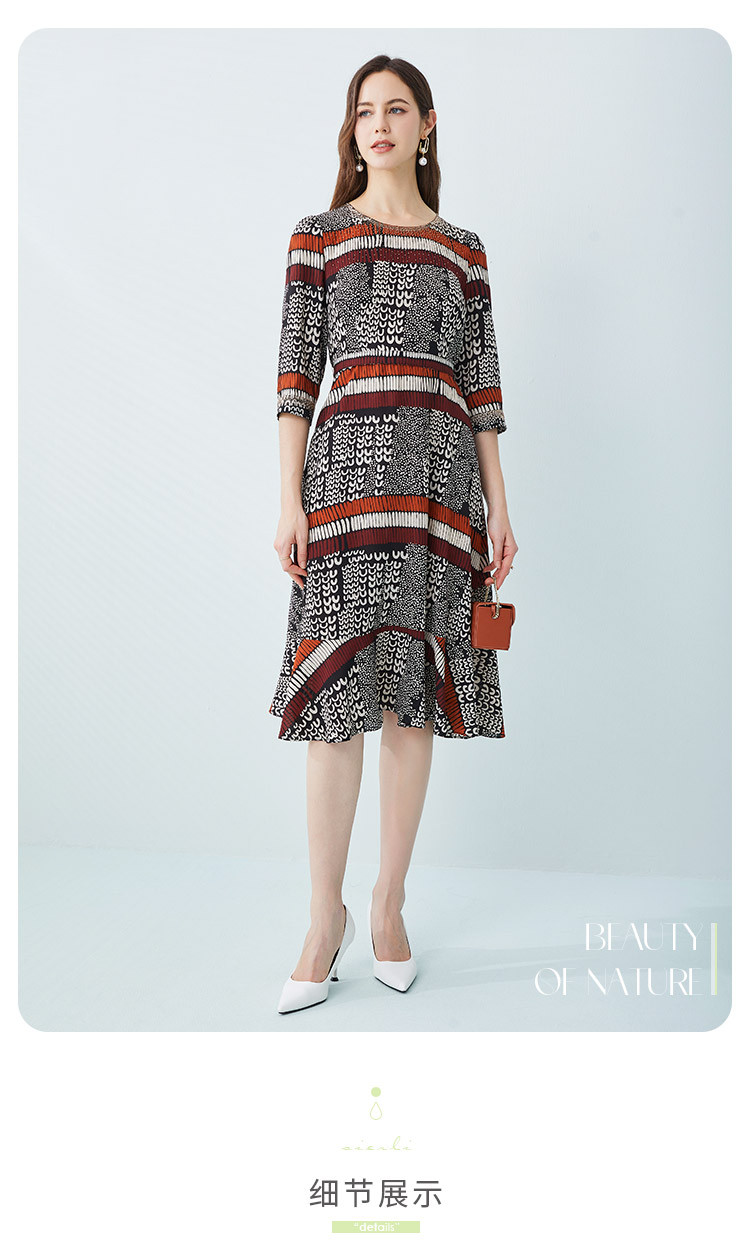 商品名称:[商场同款]秋季复古撞色时髦感印花温婉鱼尾摆连衣裙 470495