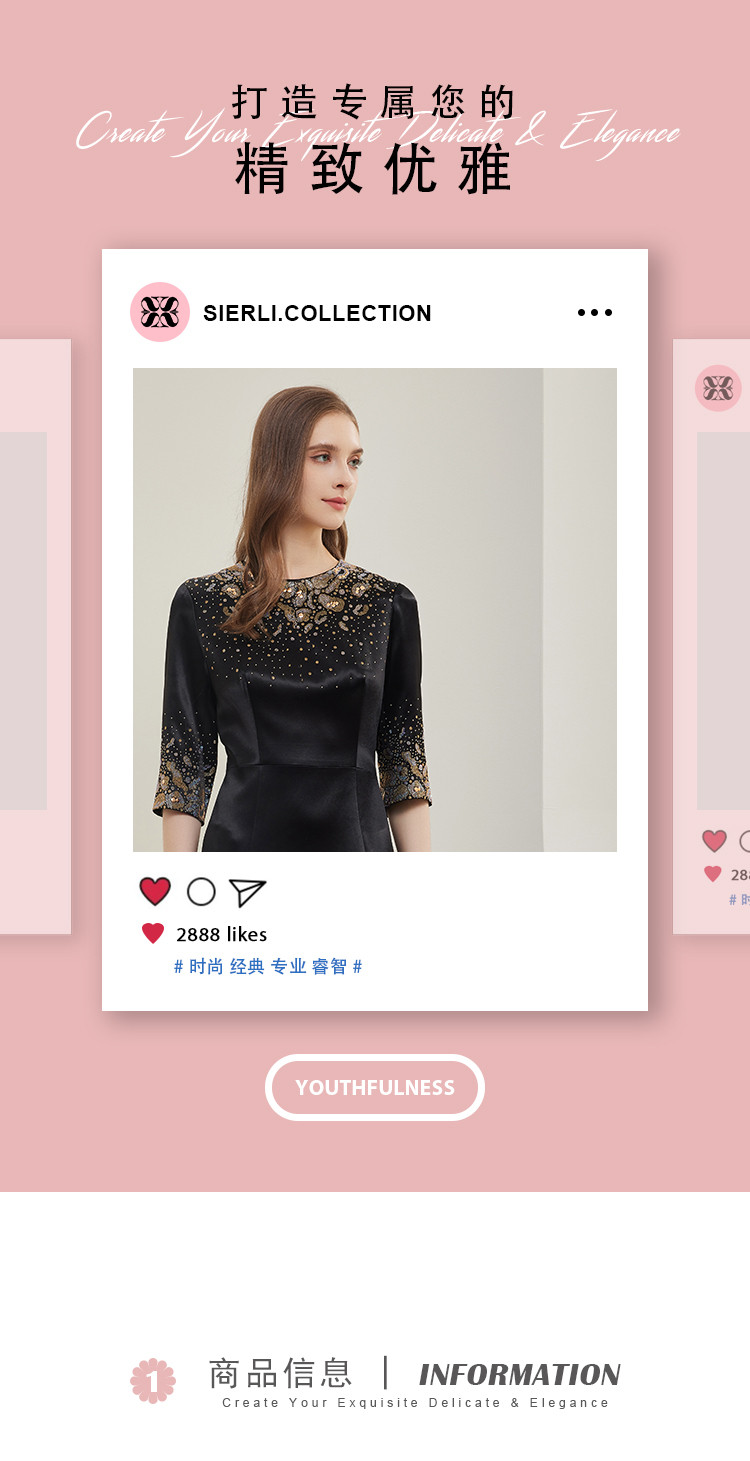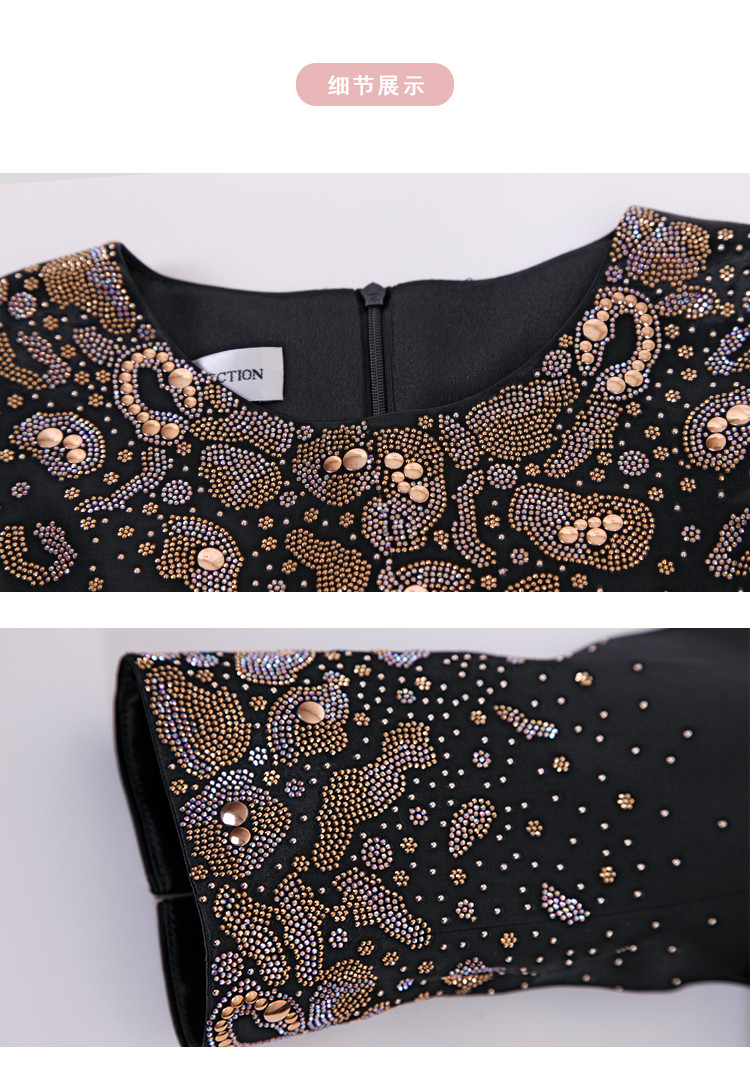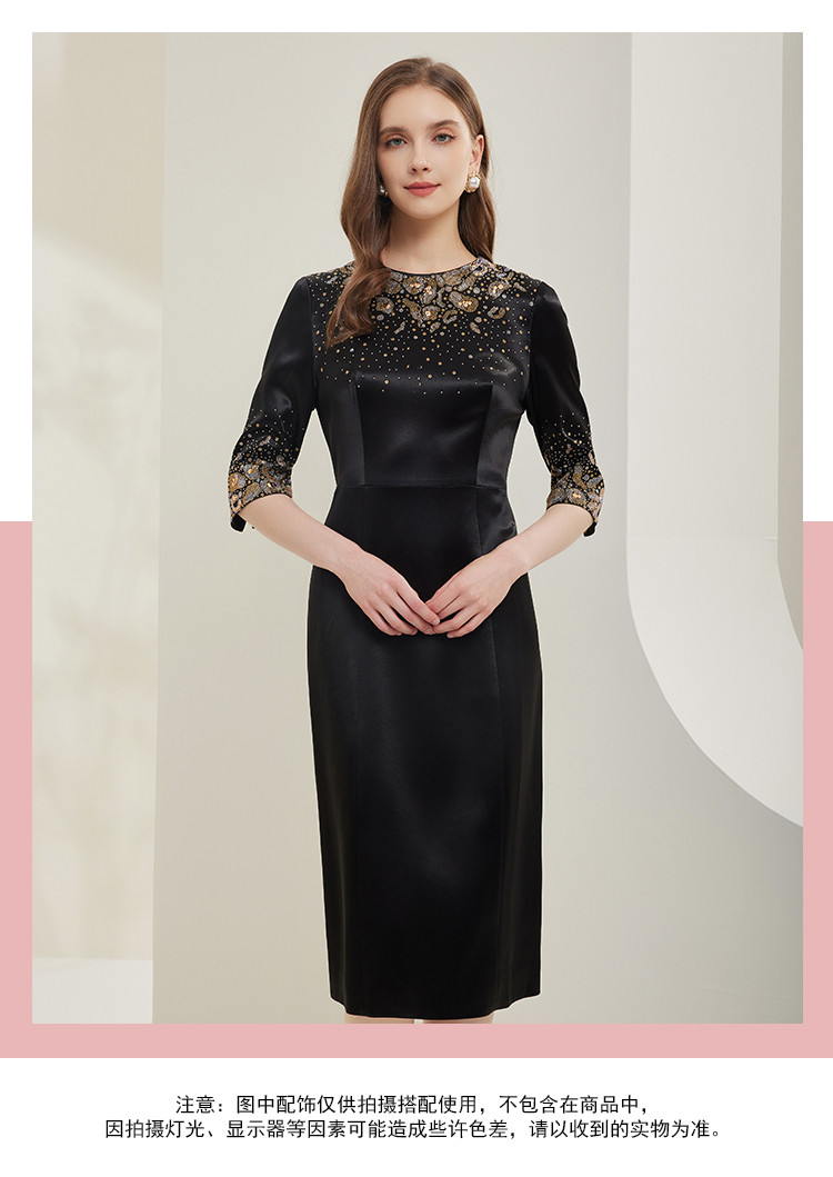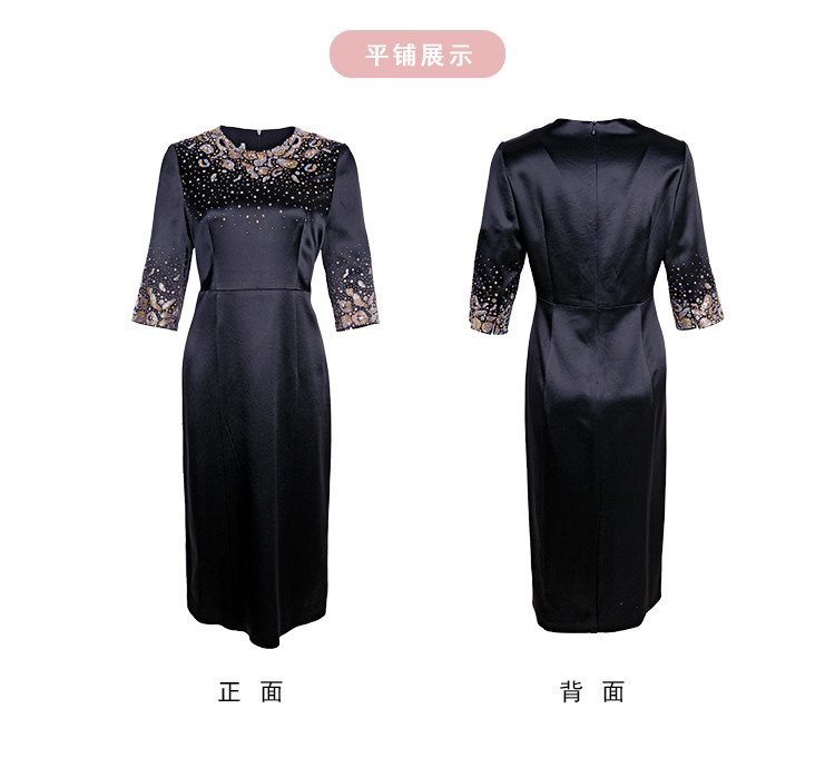 商品名称:春秋季节大气优雅宴会礼服收腰五分袖中长连衣裙 731615