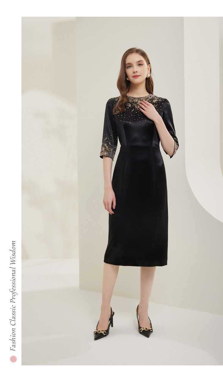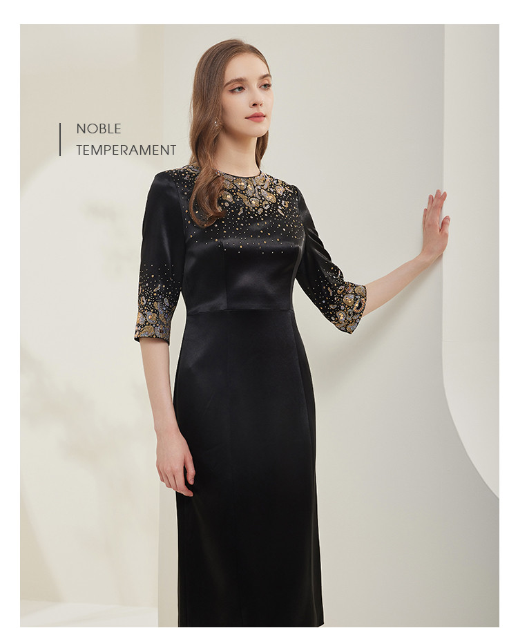 春秋季节大气优雅宴会礼服收腰五分袖中长连衣裙 731615
