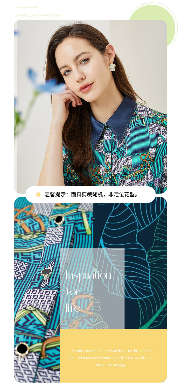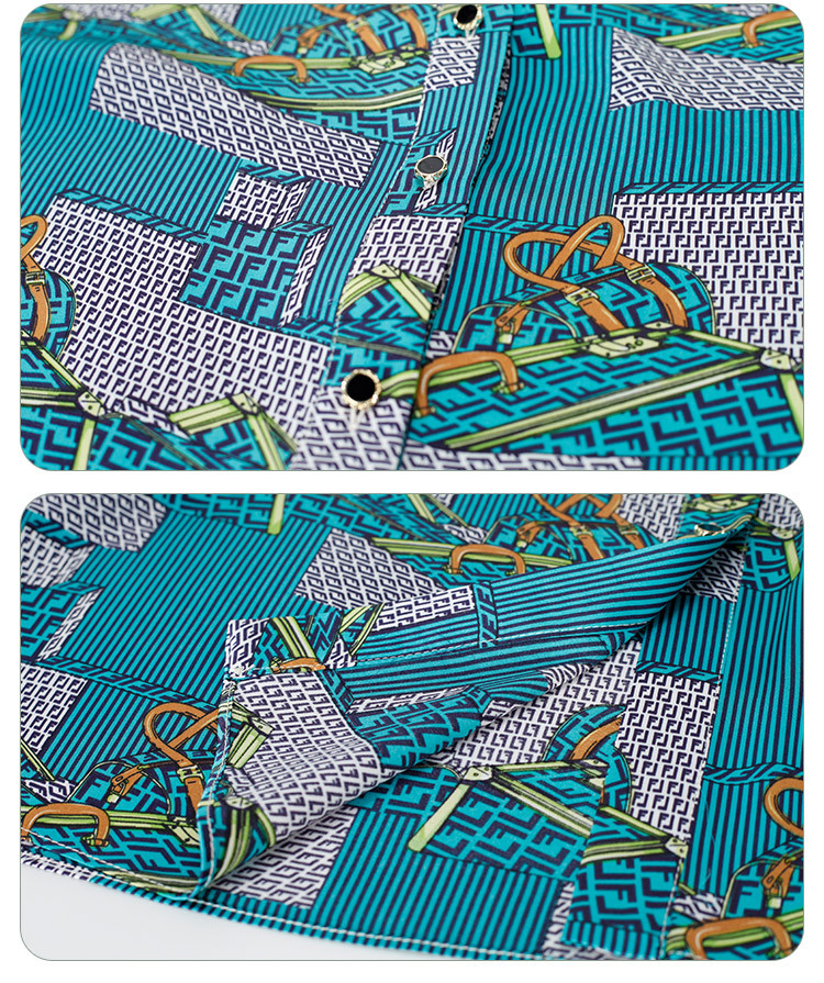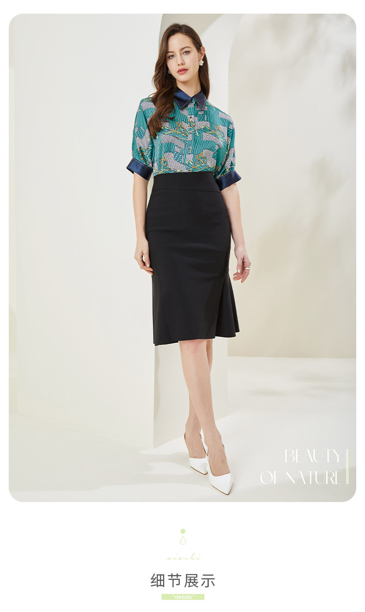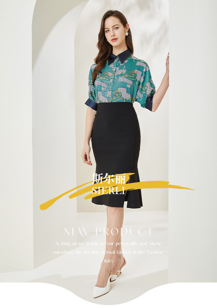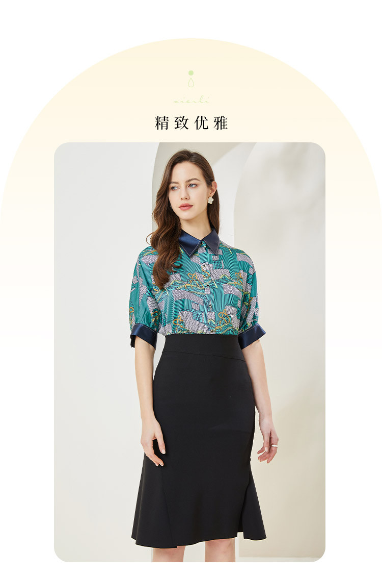 商品名称:商场同款秋季复古巴洛克印花撞色烫钻5分袖衬衣 383903