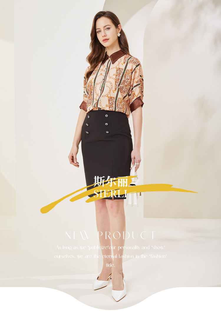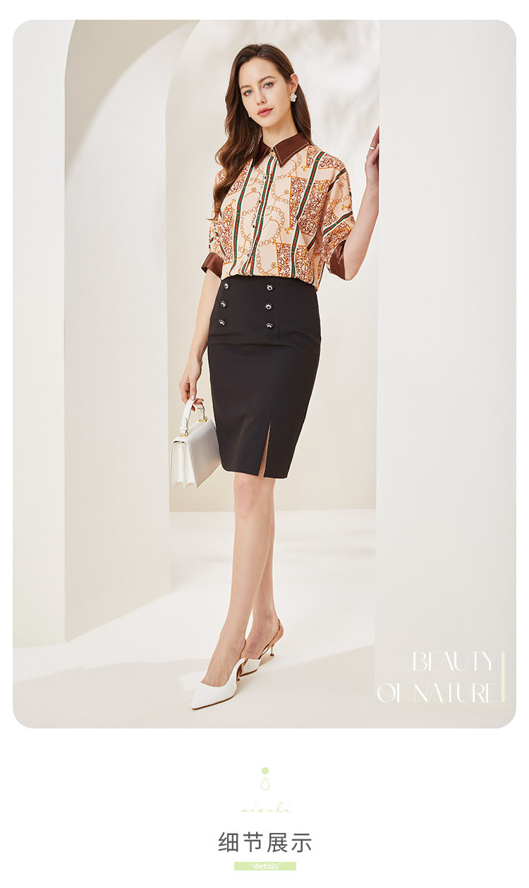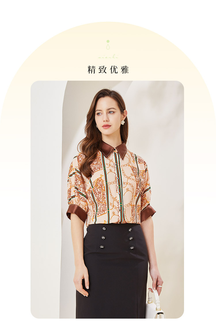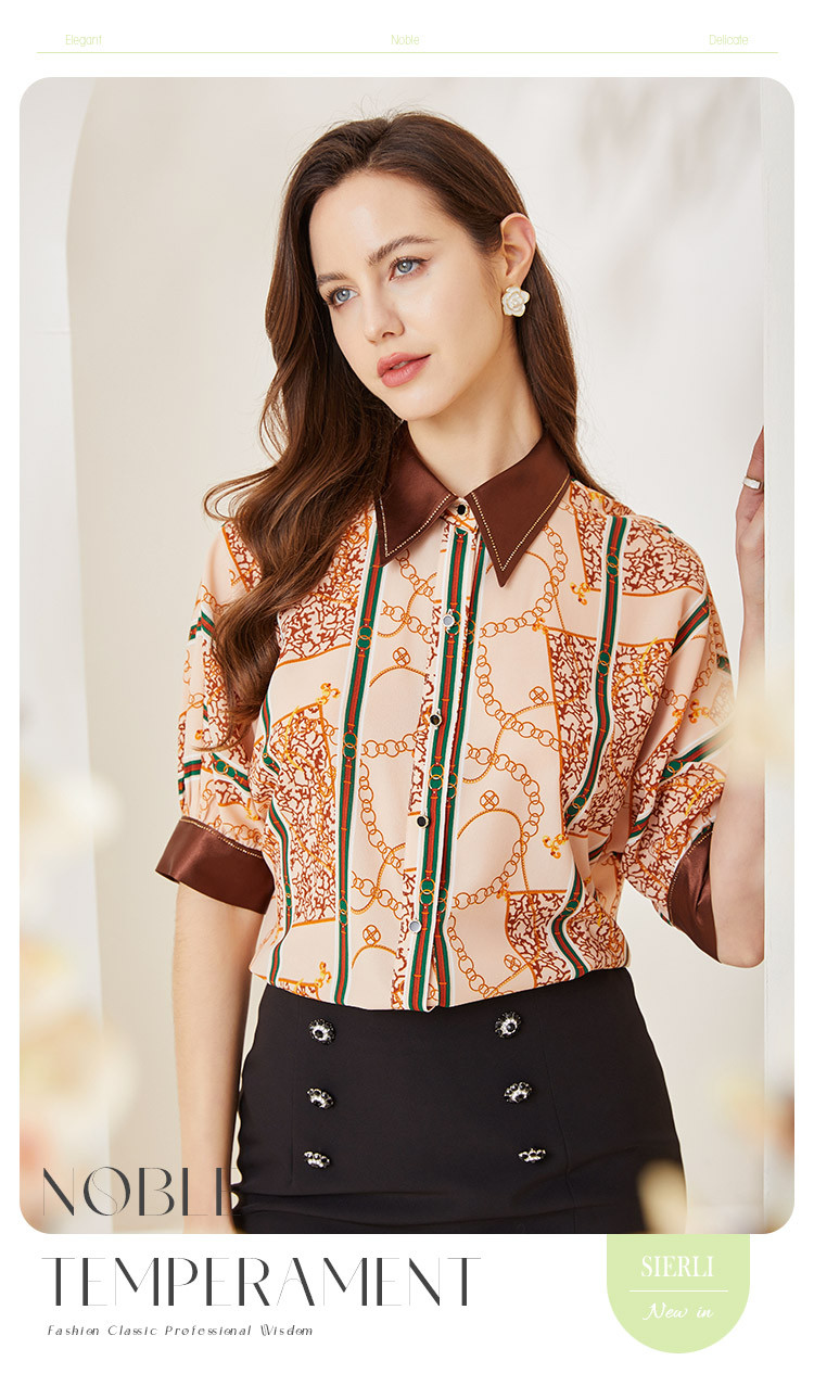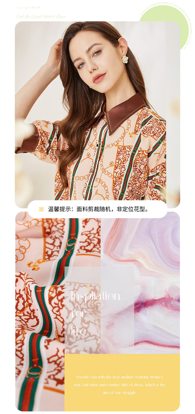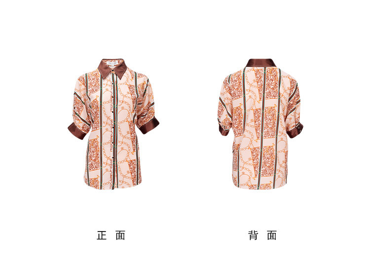 商品名称:商场同款秋季复古巴洛克印花优雅女神范衬衣 225887