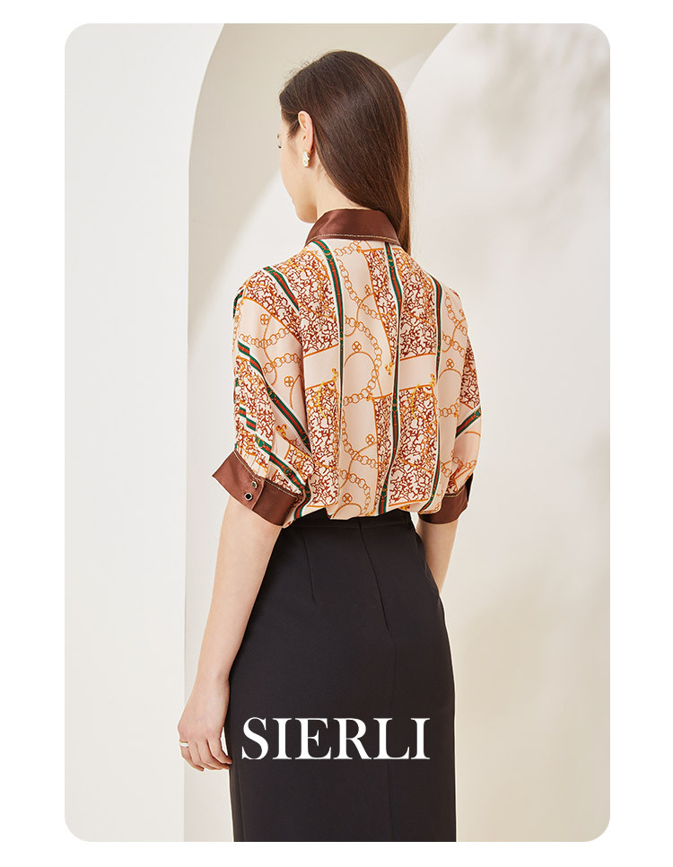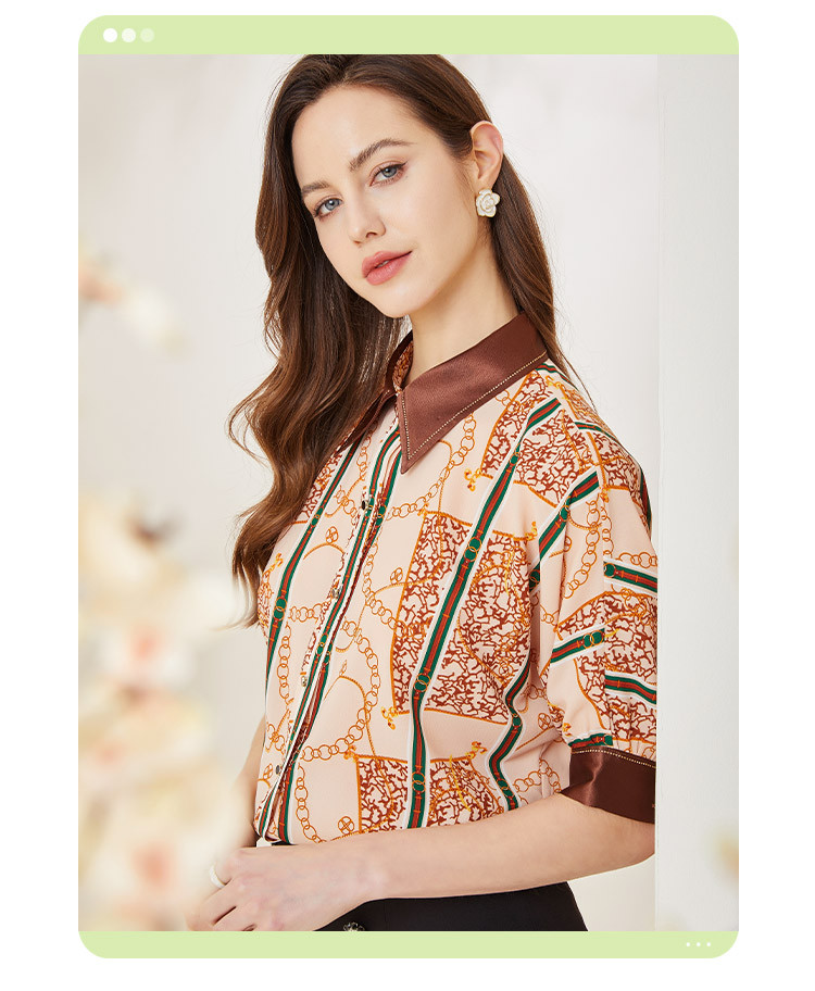 商场同款秋季复古巴洛克印花优雅女神范衬衣 225887