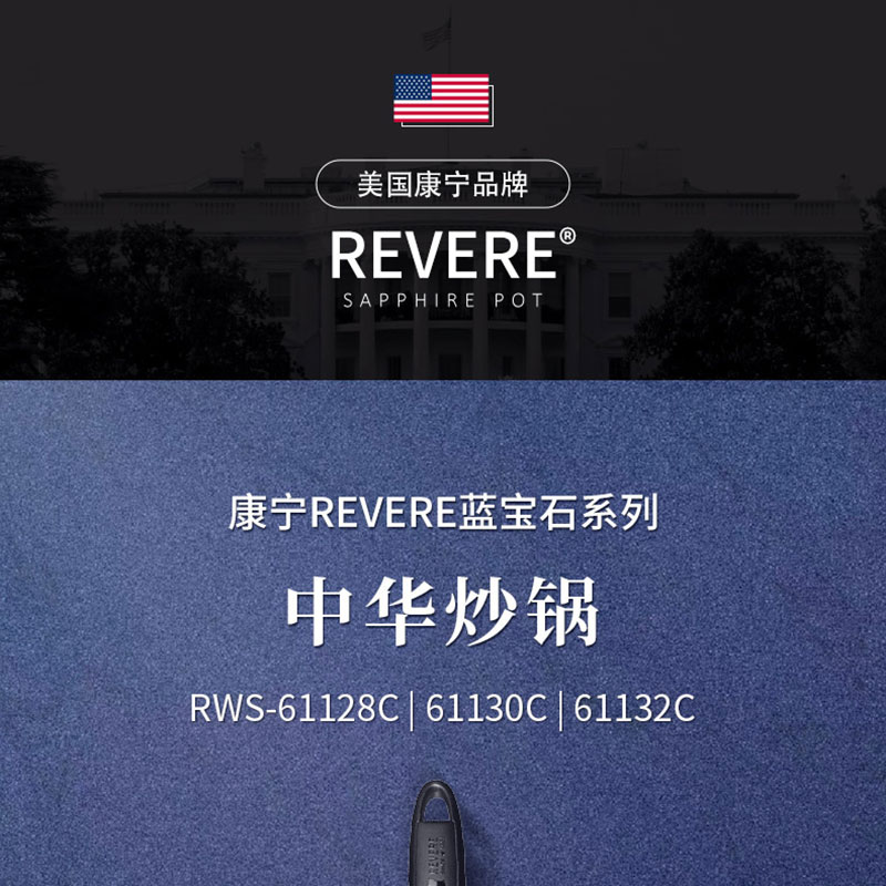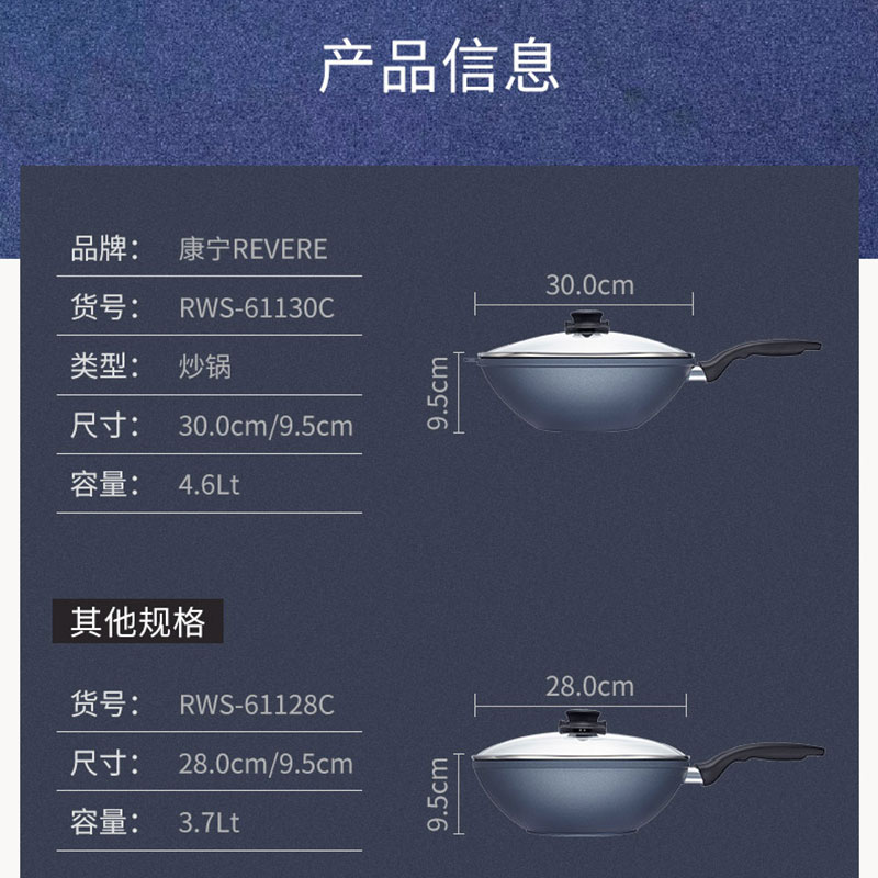 商品名称:康宁Revere蓝宝石瑞士原装进口 30cm中华炒锅RWS-61130C