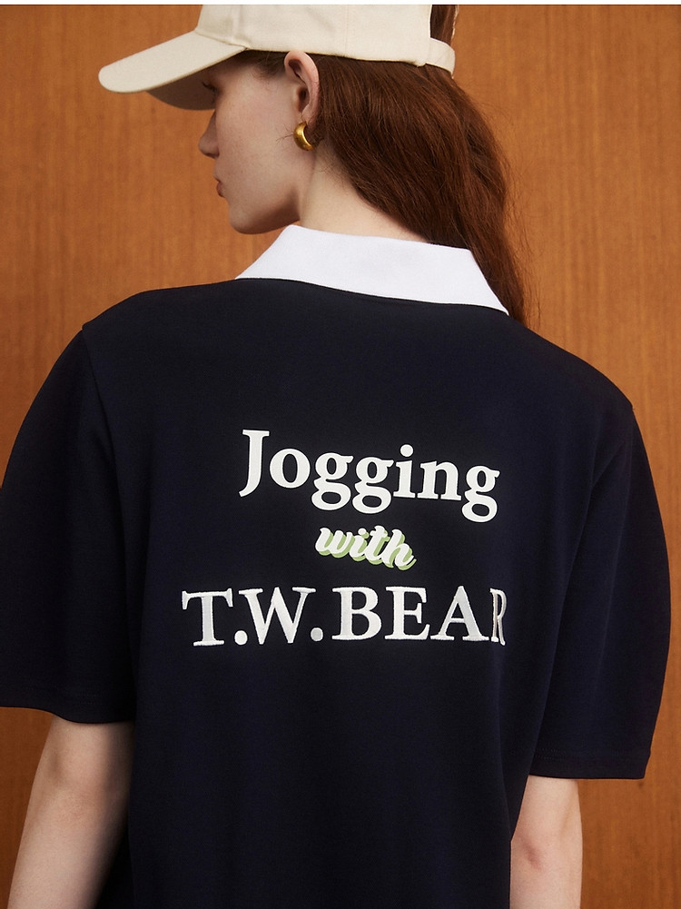 连衣裙女夏季学院风撞色基础直筒POLO连衣裙短裙女 598337