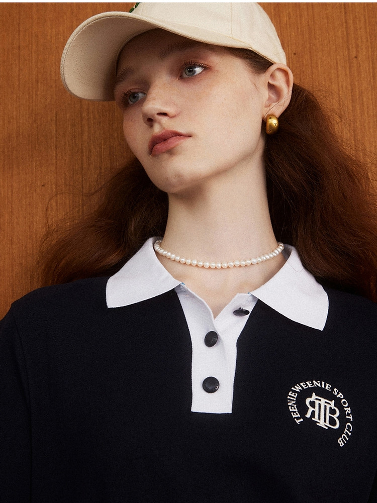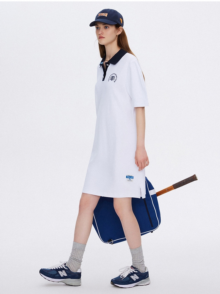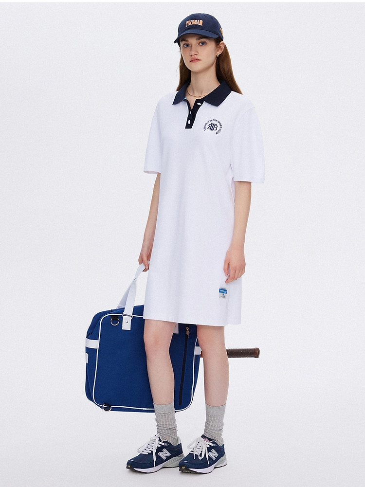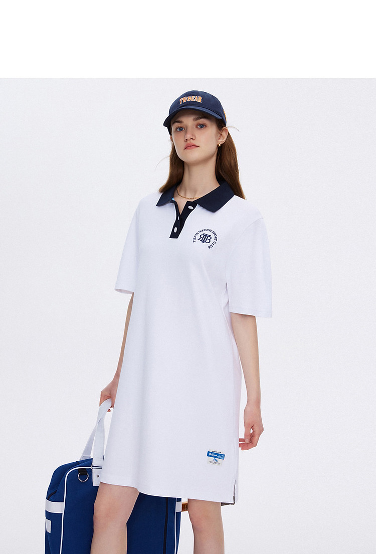 商品名称:连衣裙女夏季学院风撞色基础直筒POLO连衣裙短裙女 598337