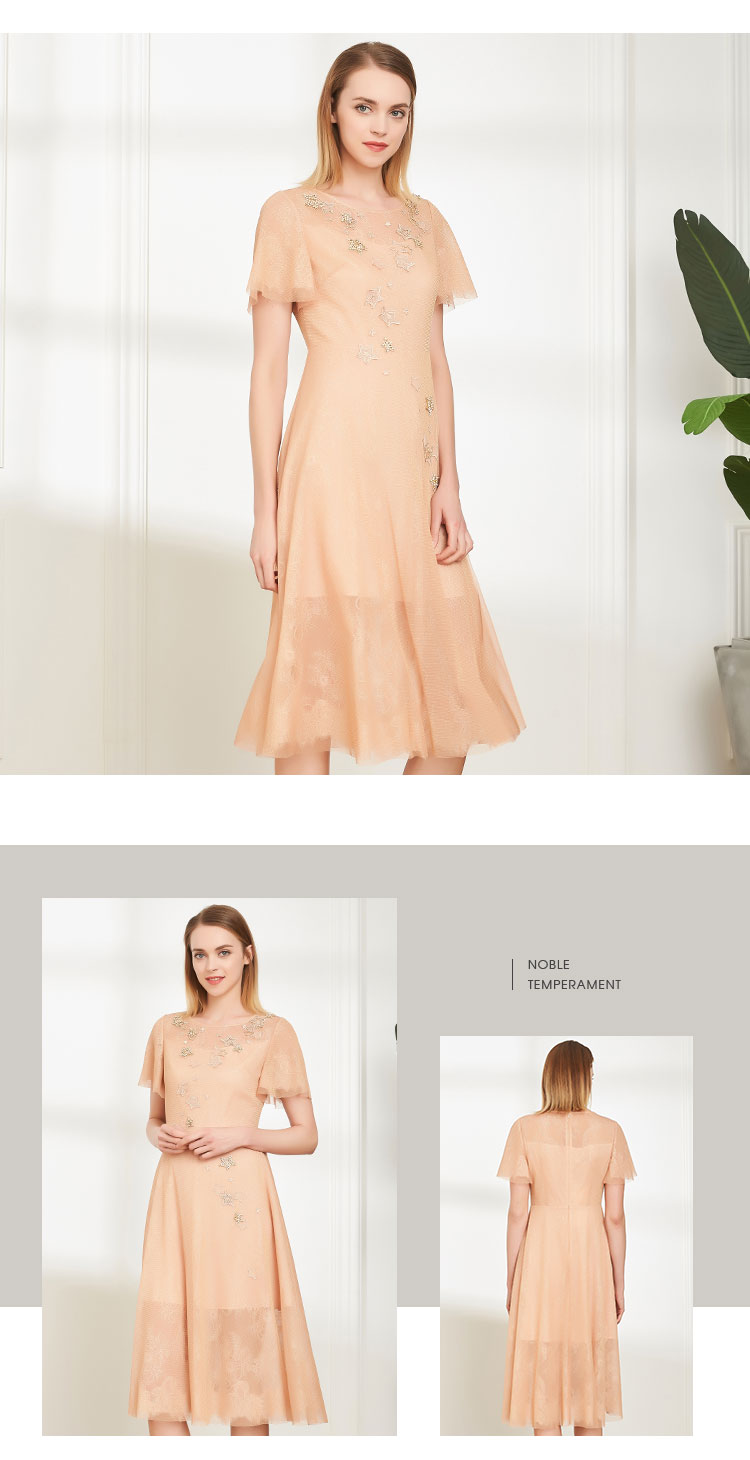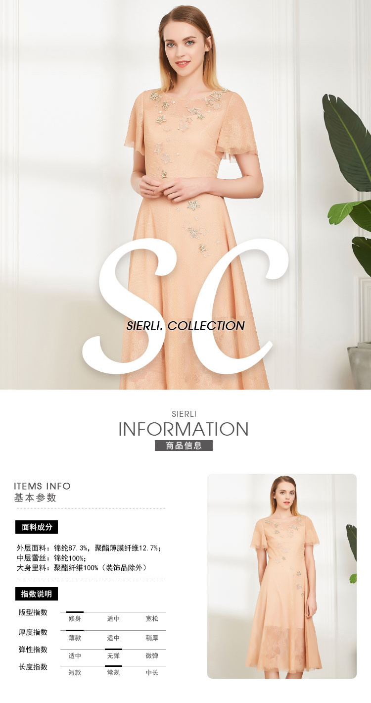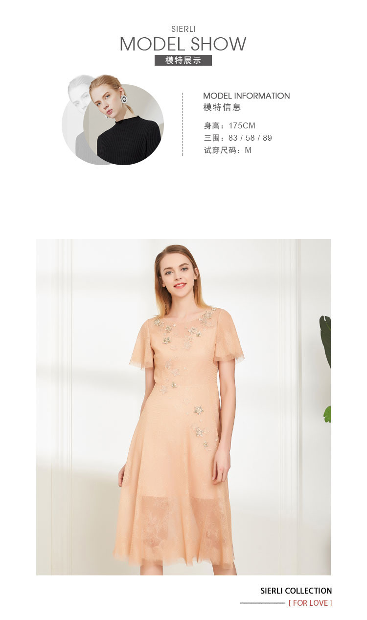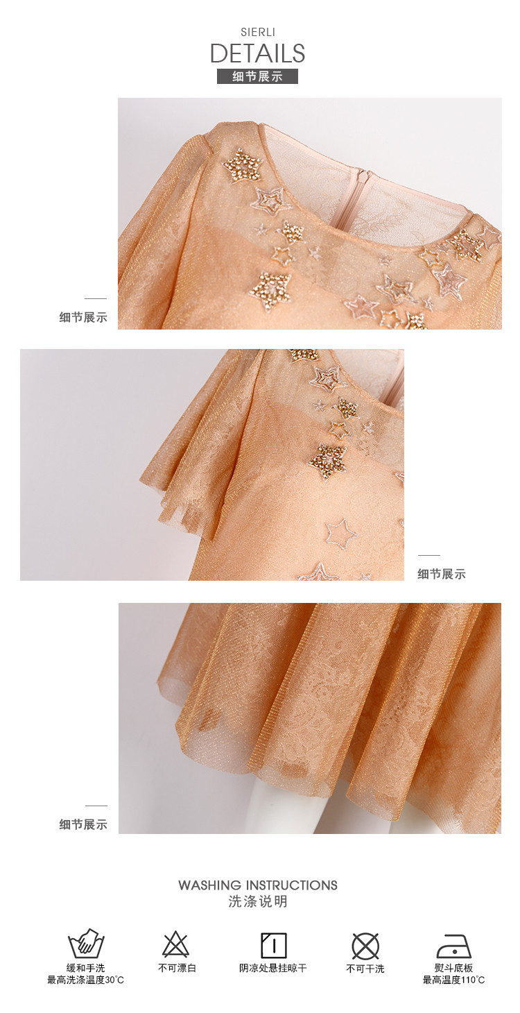 商品名称:商场同款丝质绣星网纱宽松短袖气质连衣裙 505439
