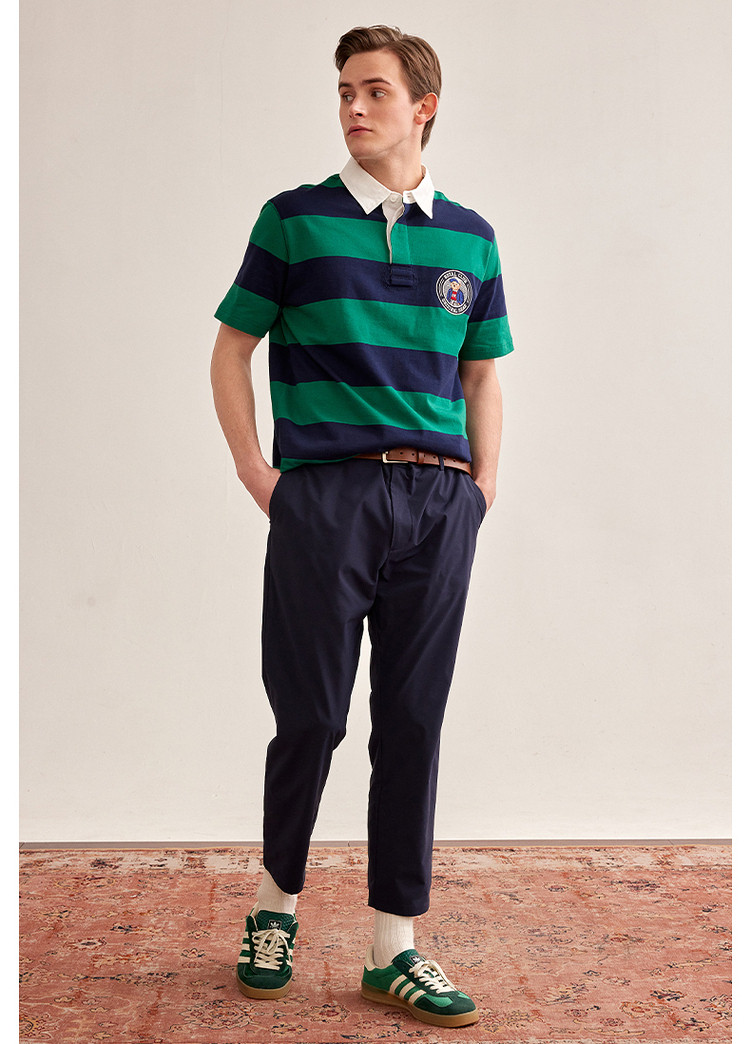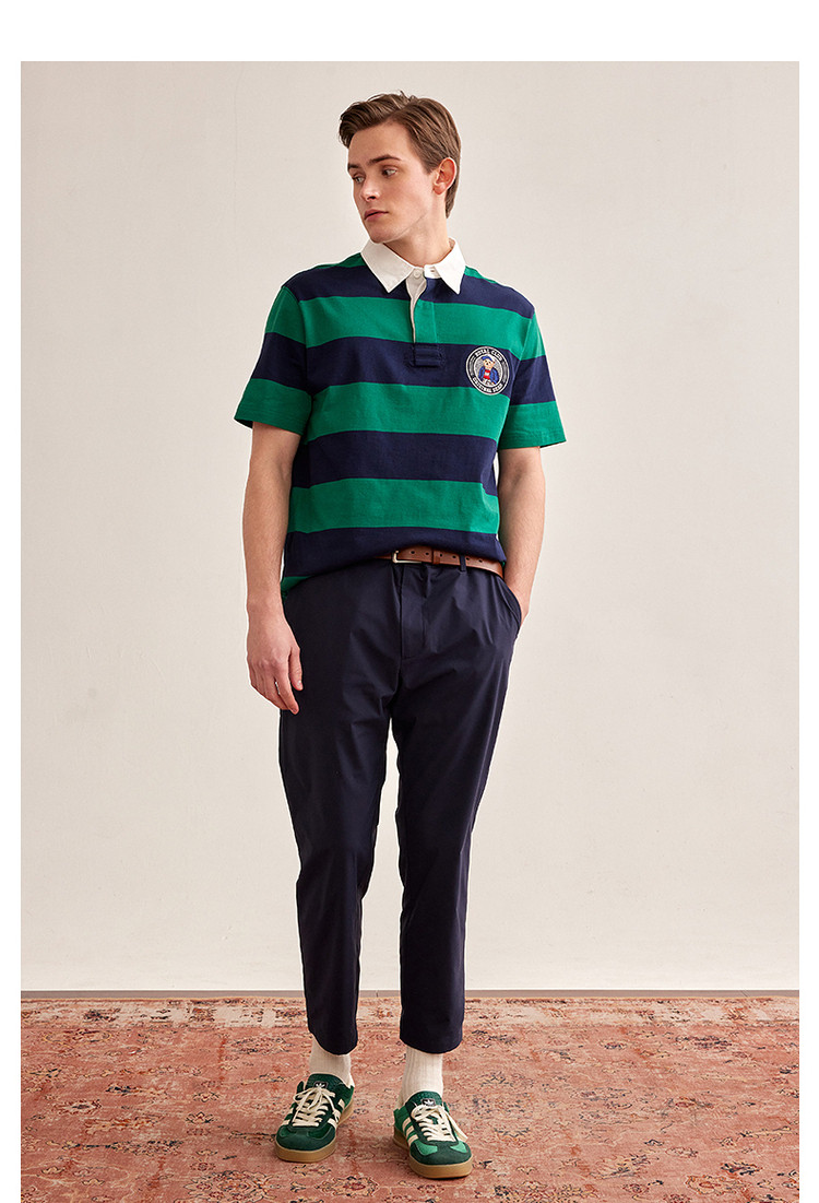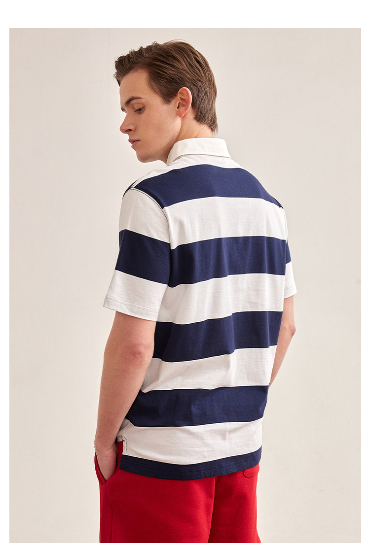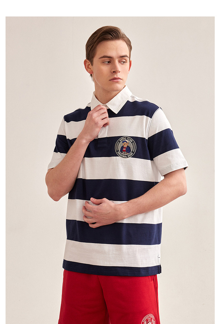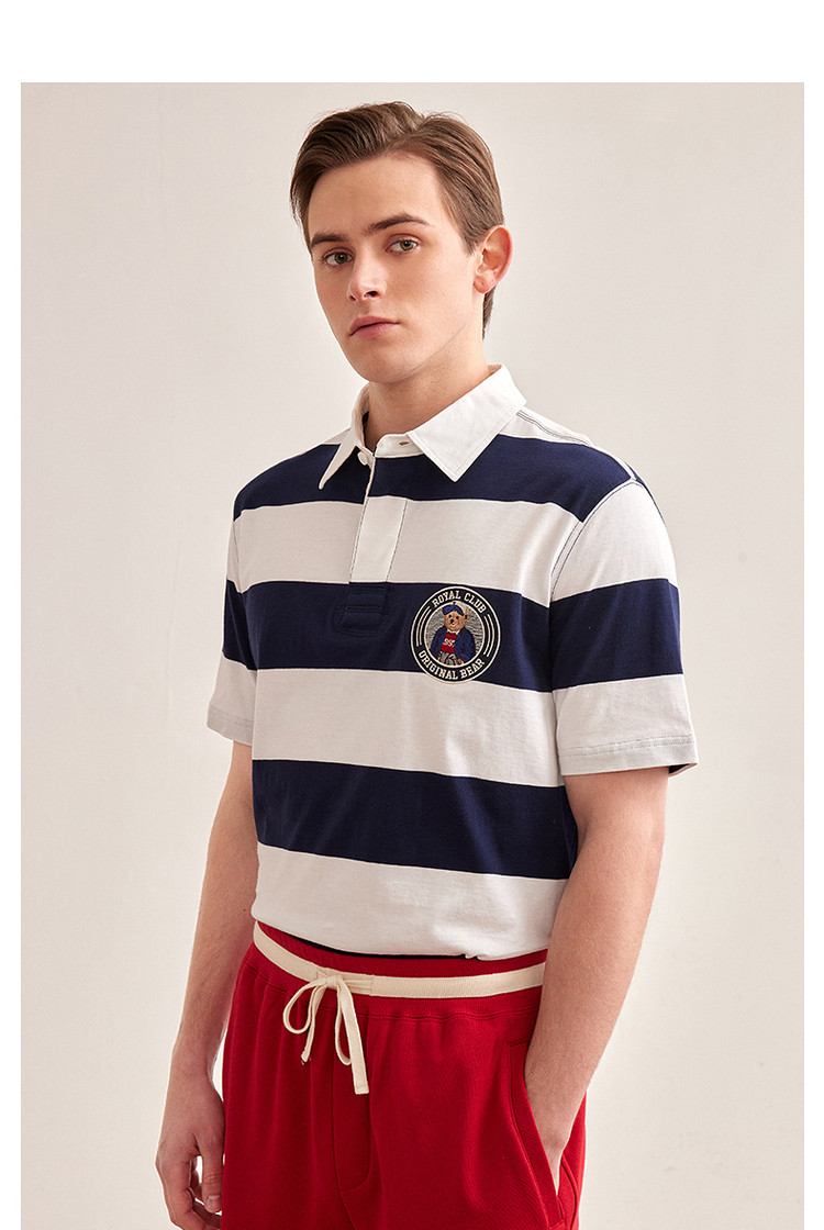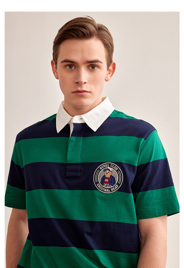商品名称:小熊男POLO衫夏季美式复古学院撞色条纹翻领休闲polo衫男 892609