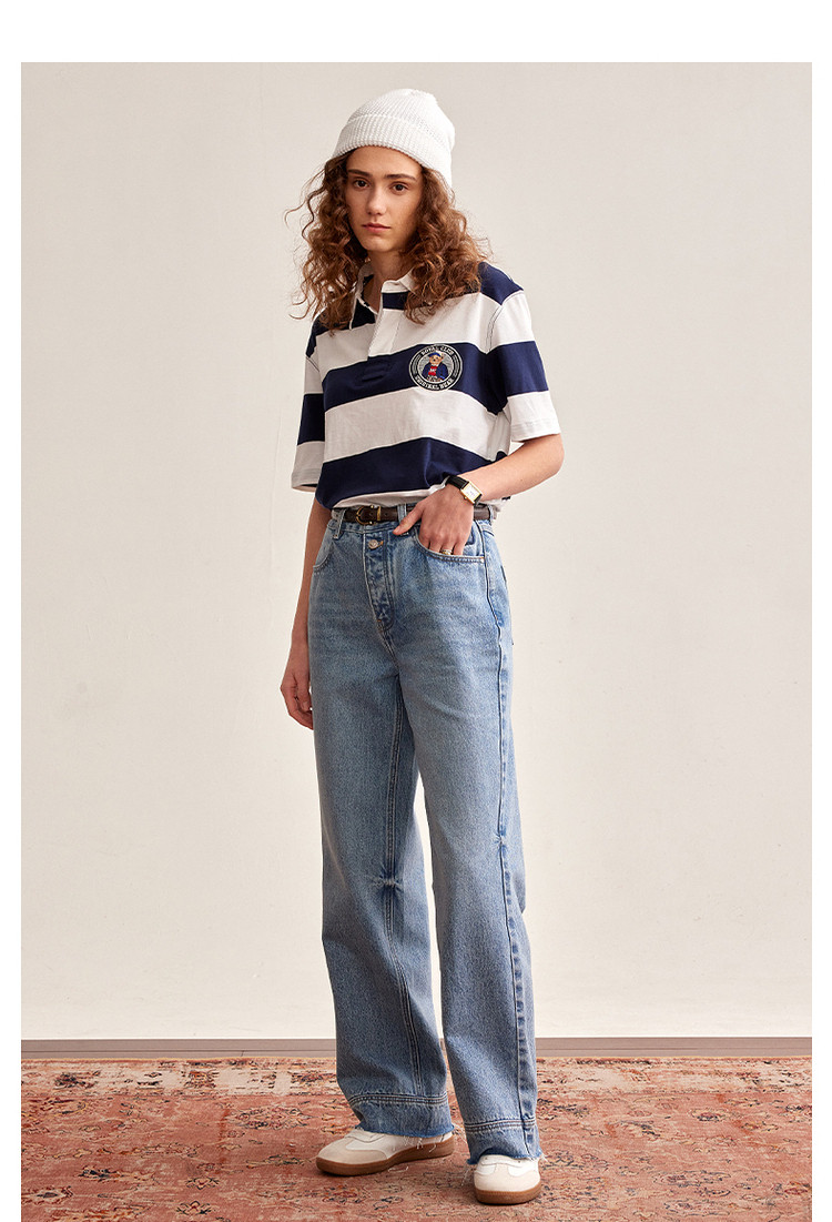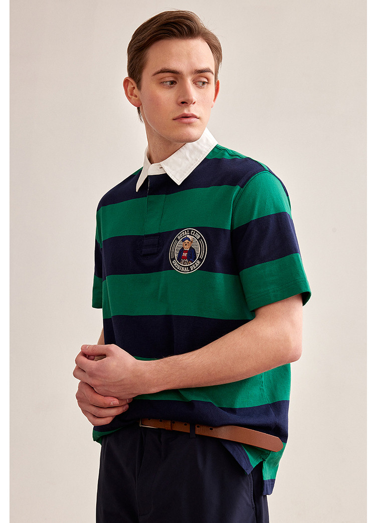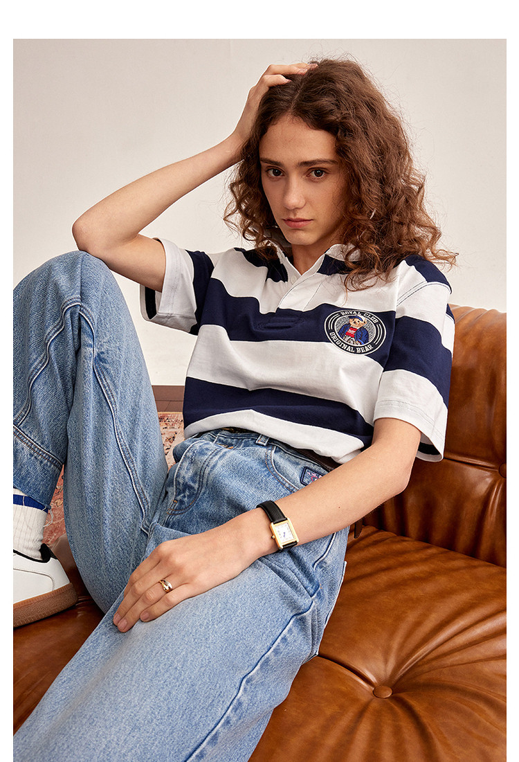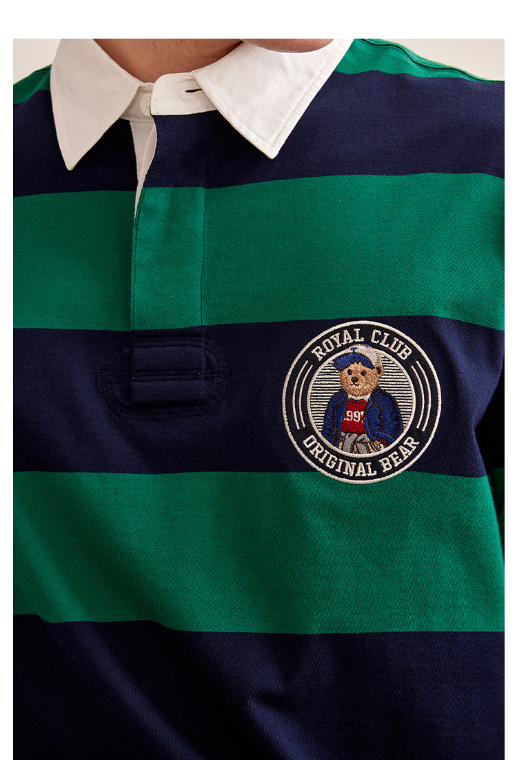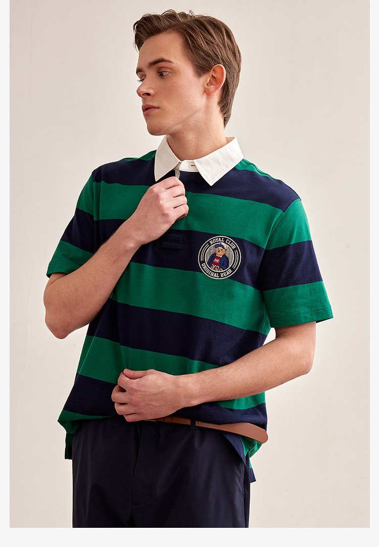小熊男POLO衫夏季美式复古学院撞色条纹翻领休闲polo衫男 892609