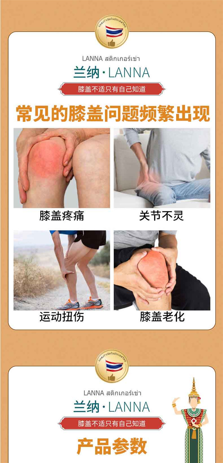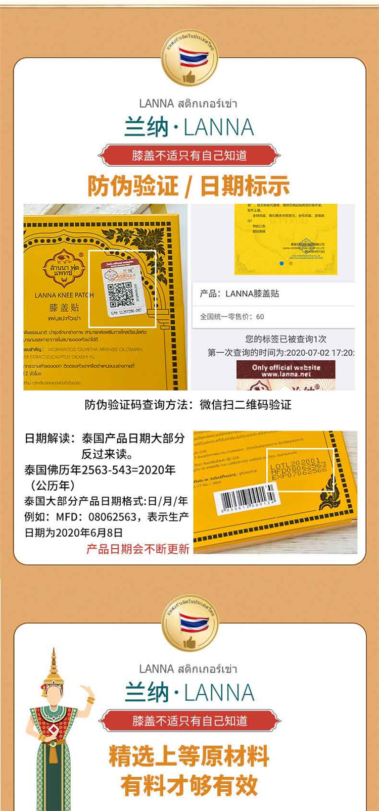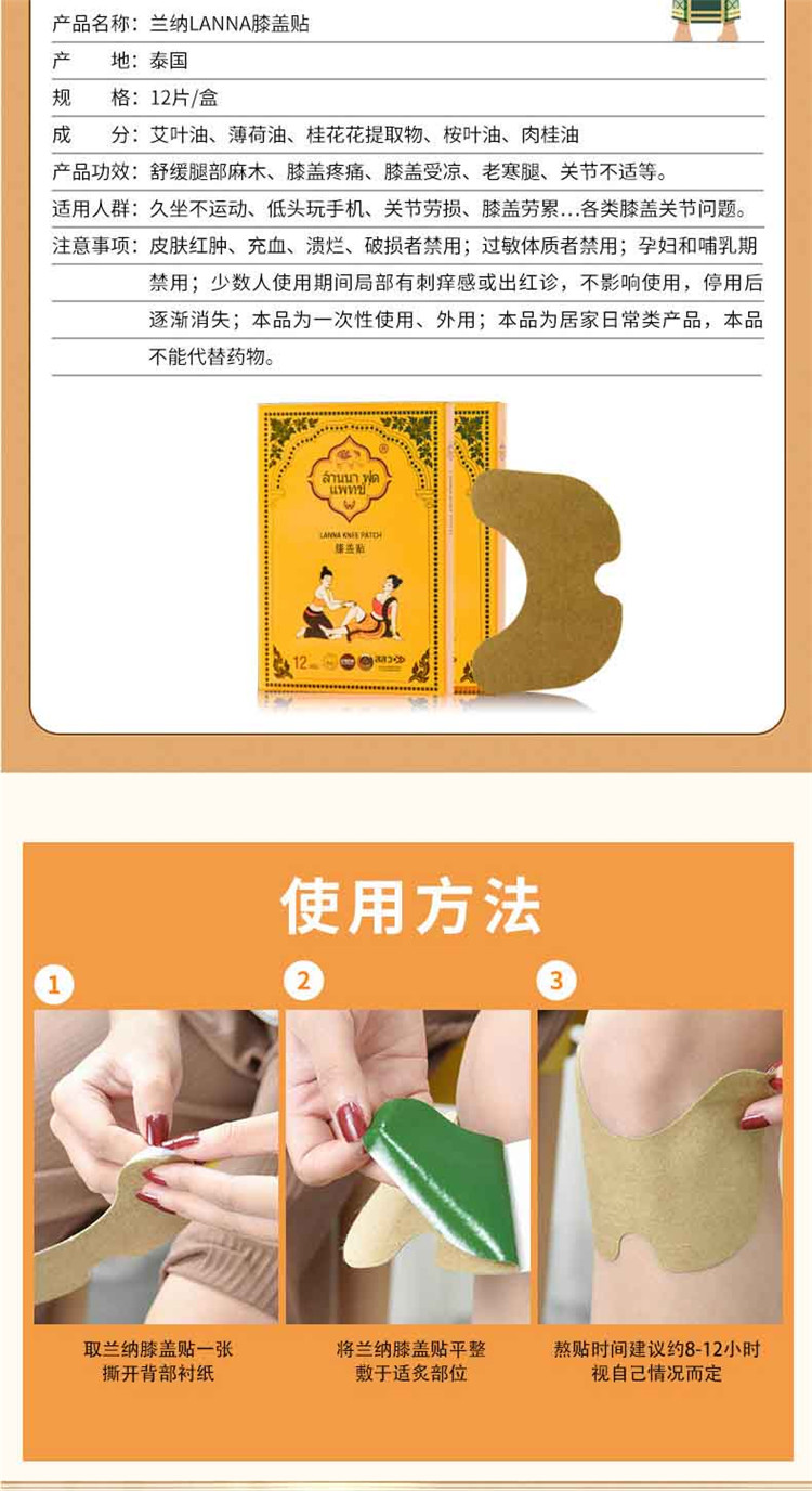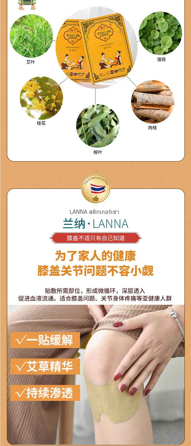 商品名称:泰国lanna兰纳 艾草膝盖贴 舒缓腿部麻木膝盖疼痛关节不适(12贴/盒)