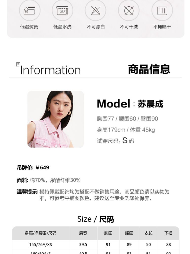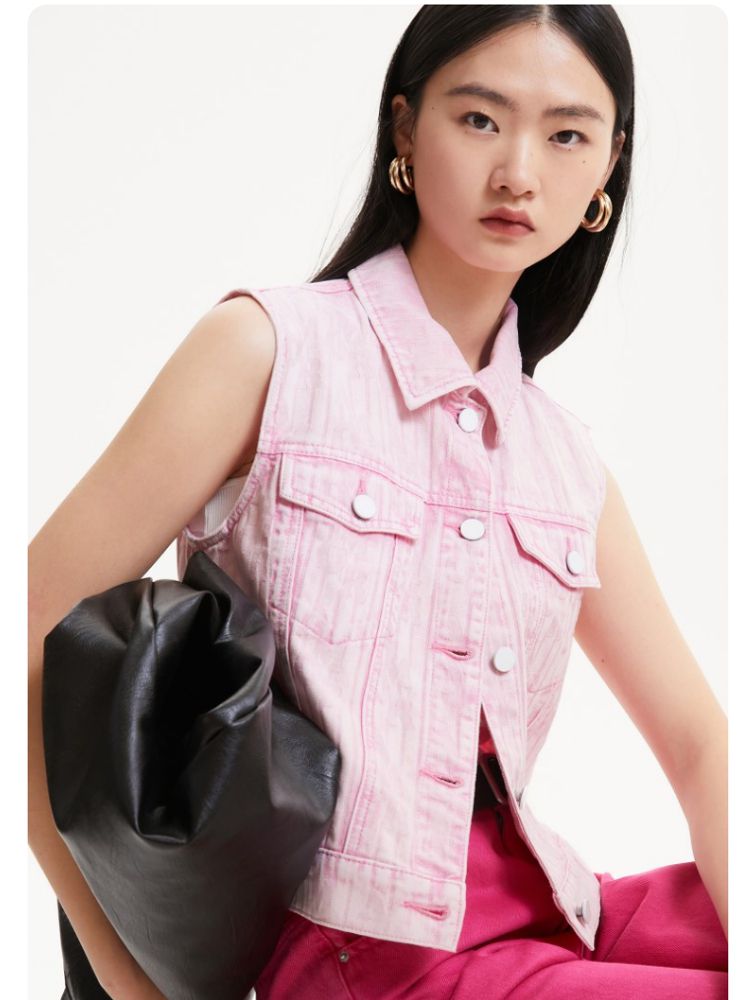 商品名称:【时髦牛仔马甲】春夏专柜同款宽松翻领印花牛仔背心气质百搭时尚 280337