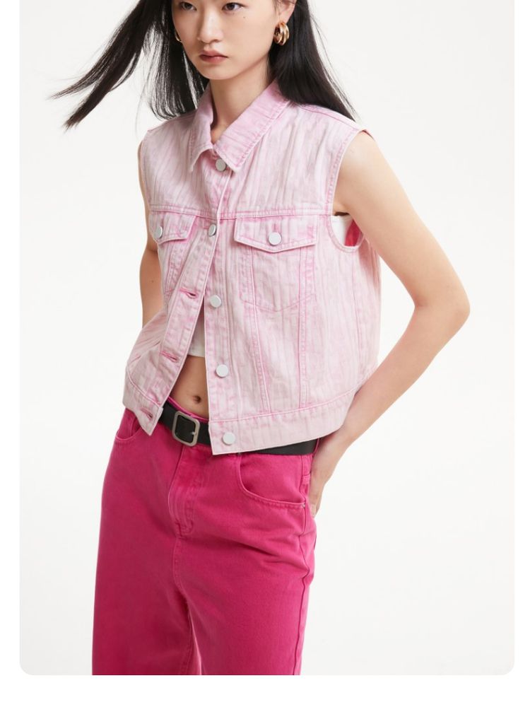 【时髦牛仔马甲】春夏专柜同款宽松翻领印花牛仔背心气质百搭时尚 280337