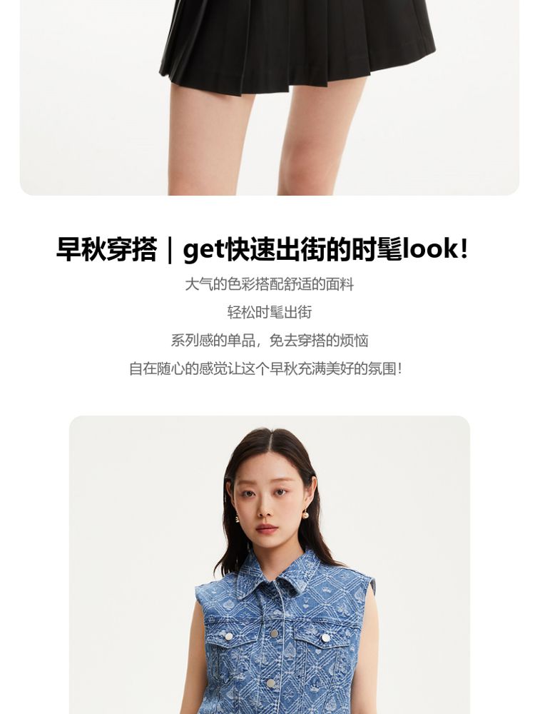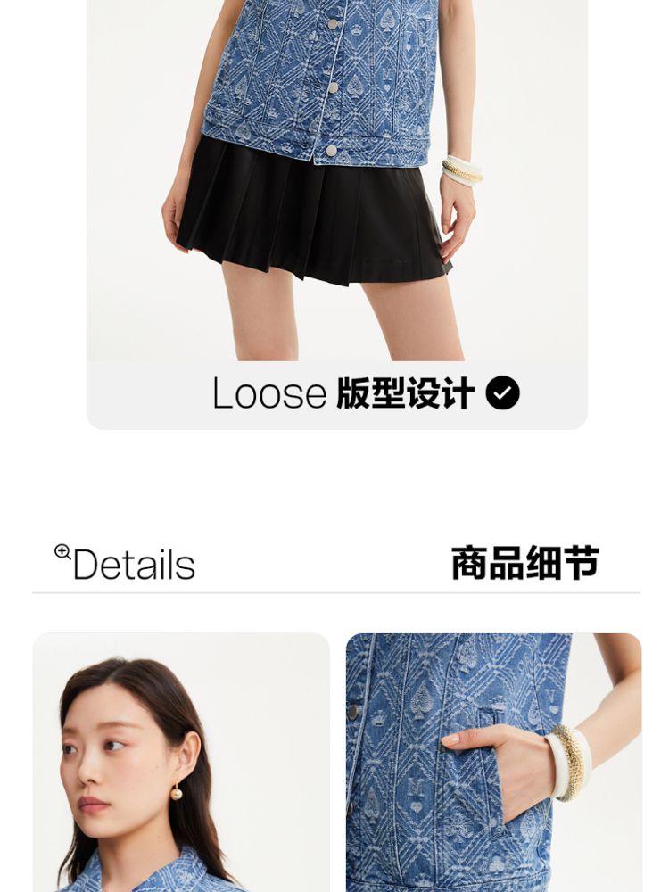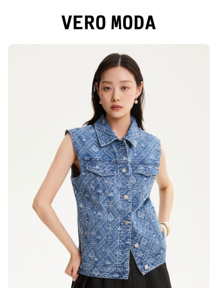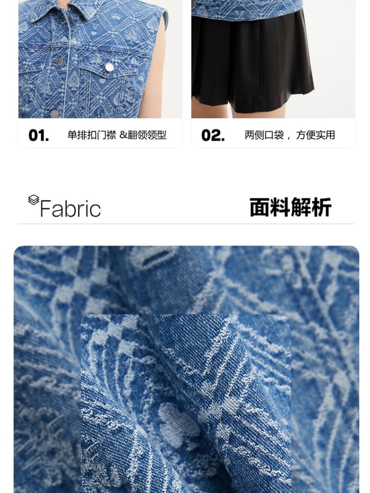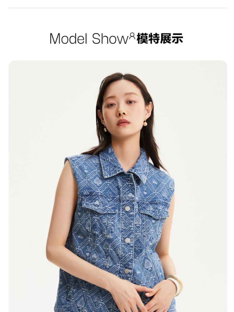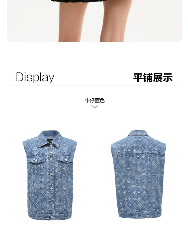 商品名称:【时髦牛仔马甲】春夏专柜款宽松翻领印花无袖背心女气质百搭时尚 760081