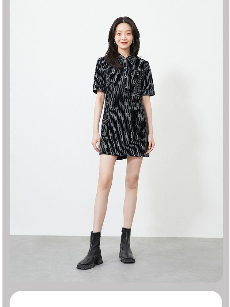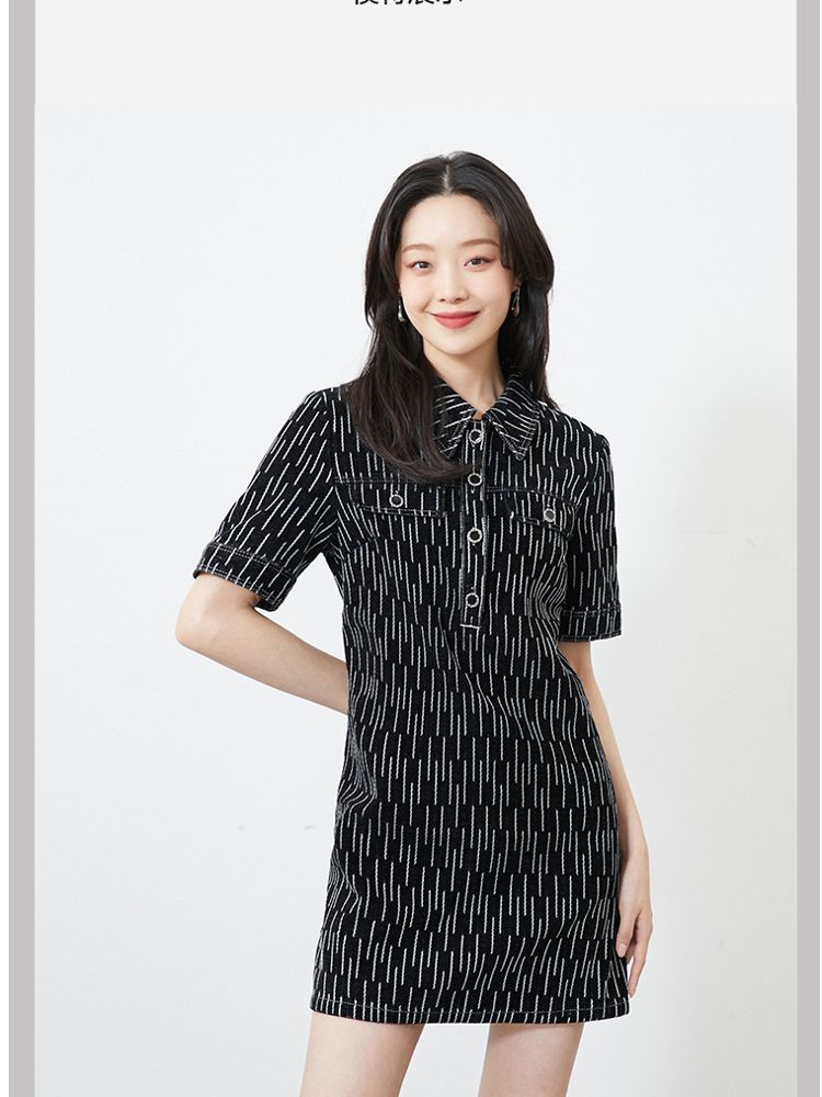商品名称:【牛仔连衣裙】春夏遮肉显瘦纽扣竖纹连衣裙气质百搭时尚 262033