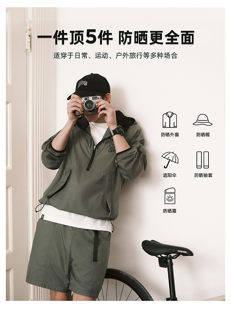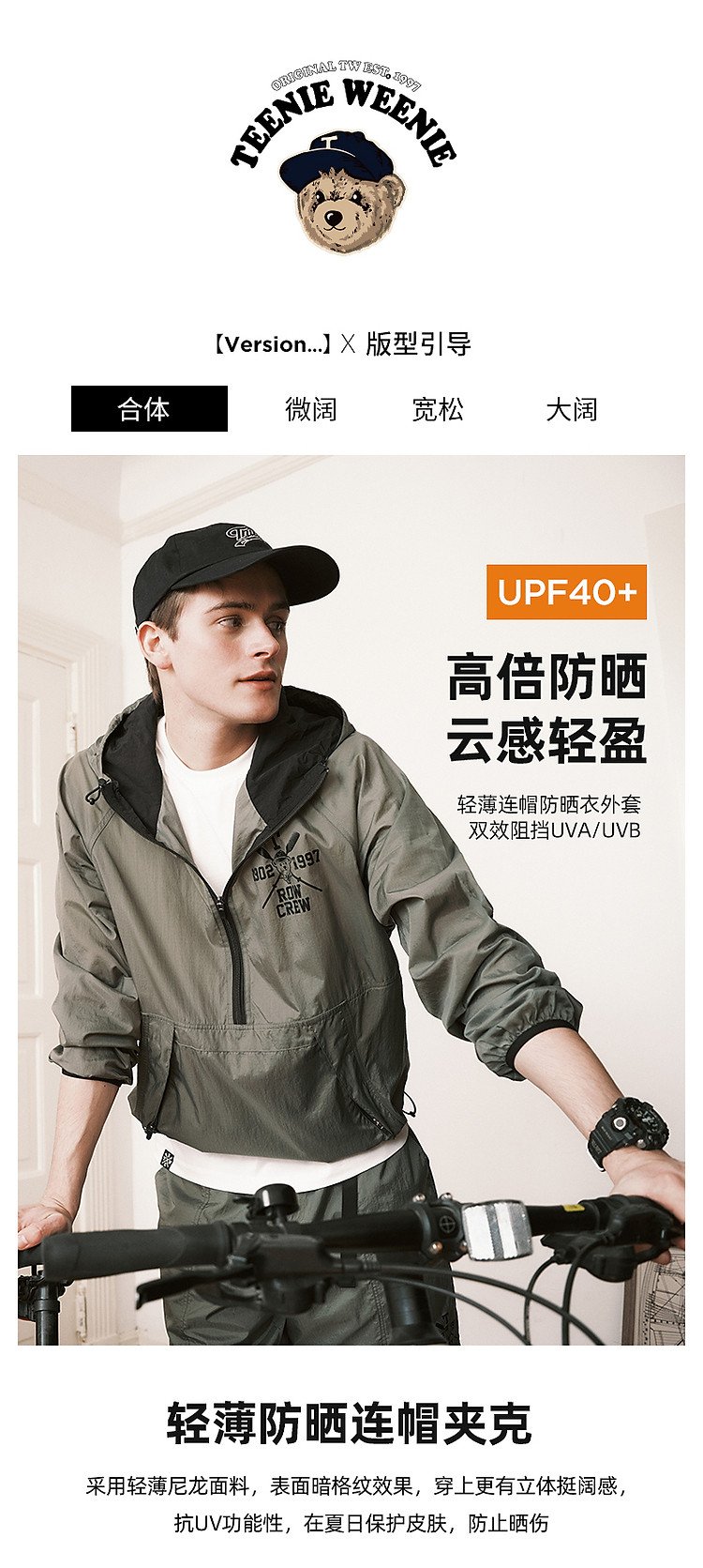 商品名称:【UPF40+】情侣款小熊夏季宽松连帽夹克外套防晒服上衣 791425