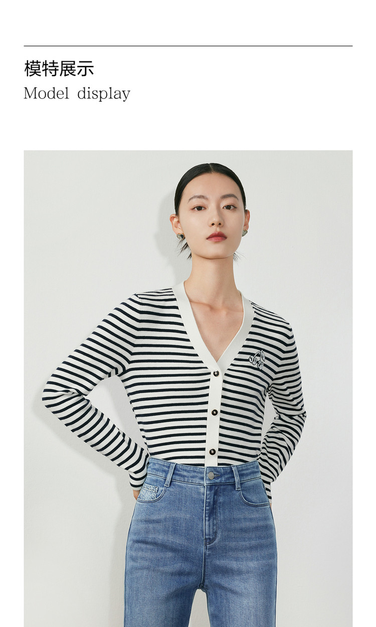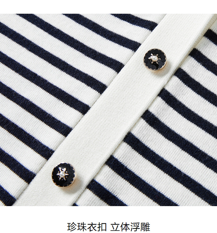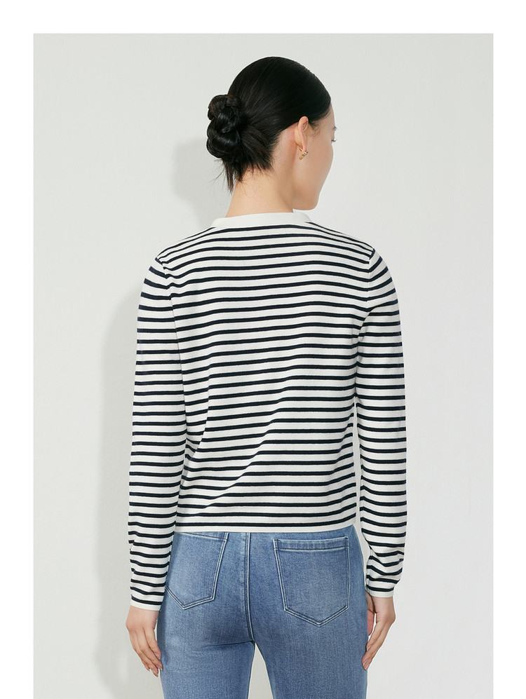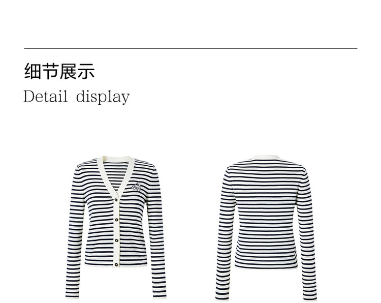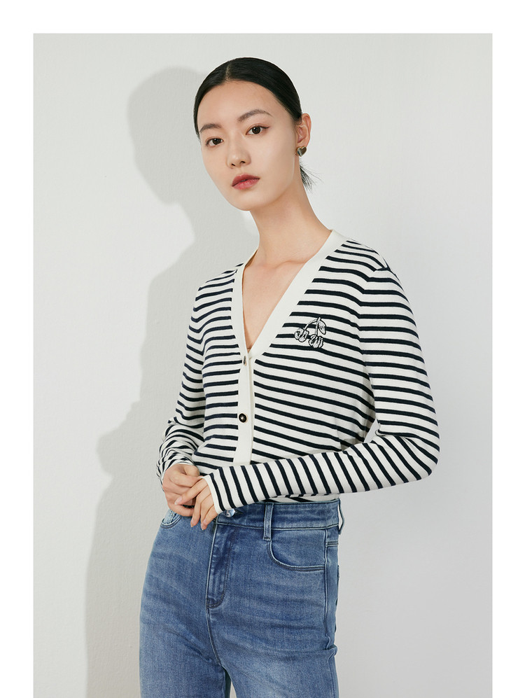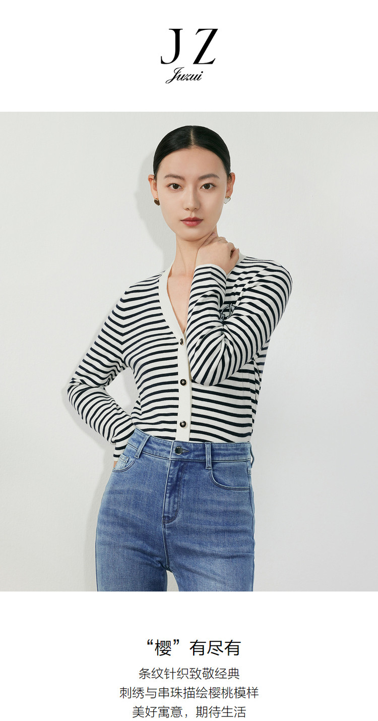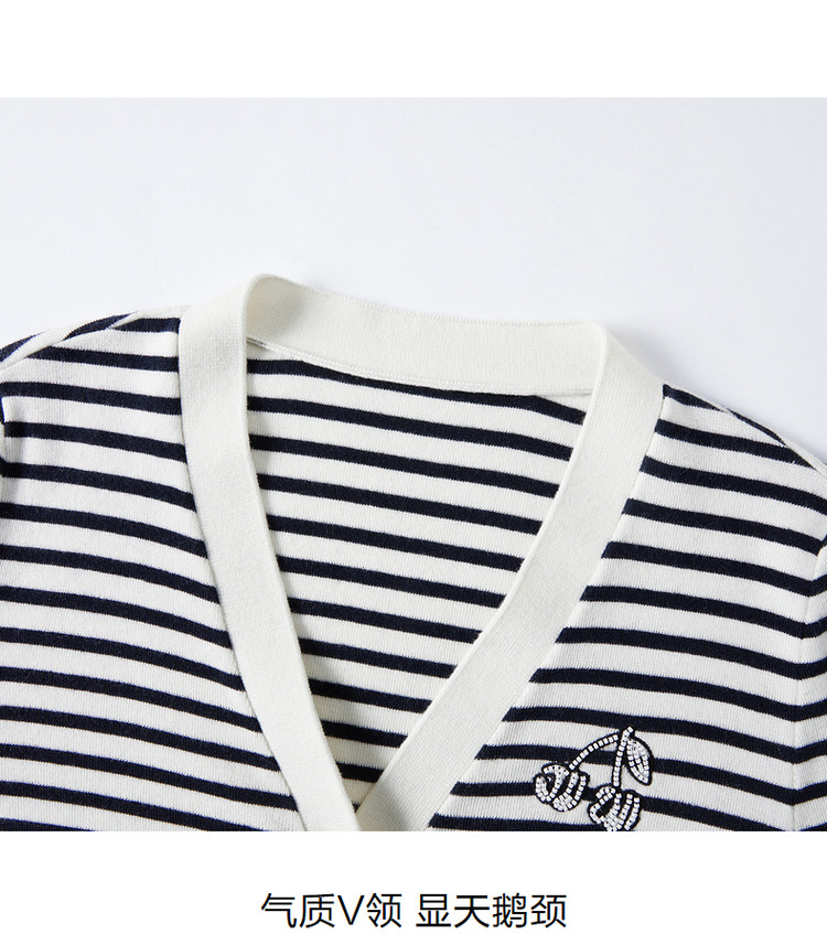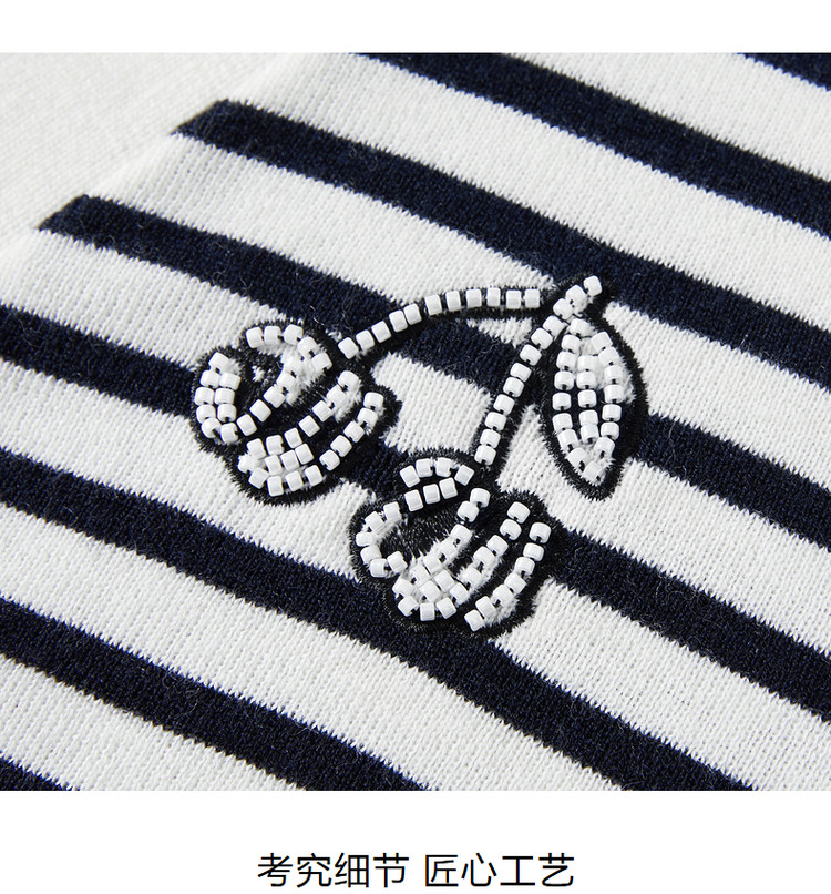 商品名称:JZ玖姿条纹套头衫女装春季立体樱桃设计感长袖针织衫 030412
