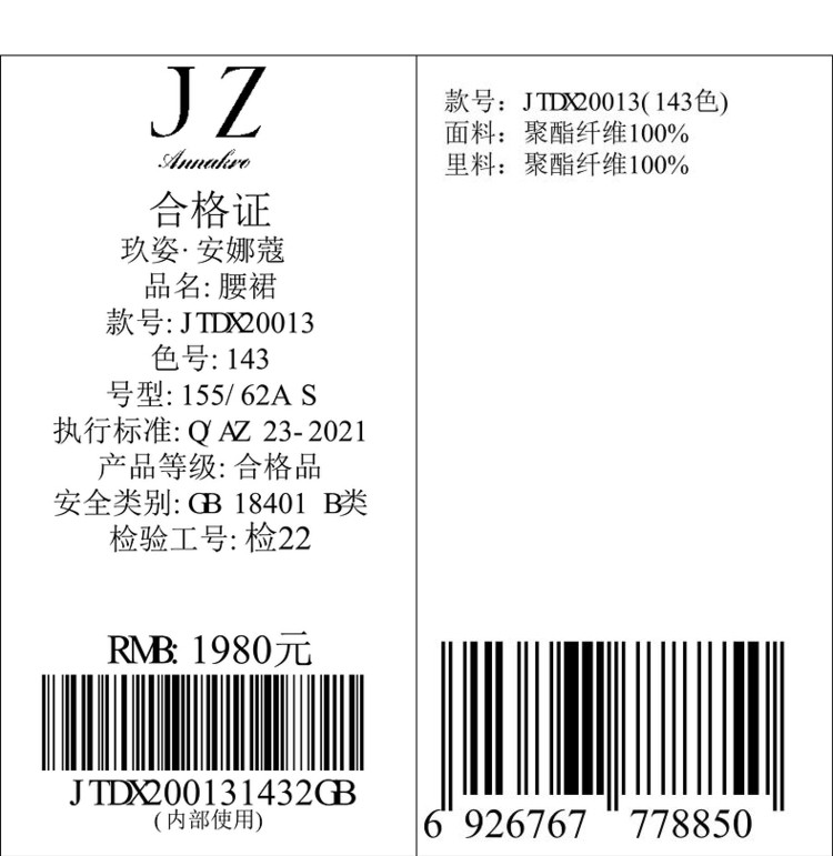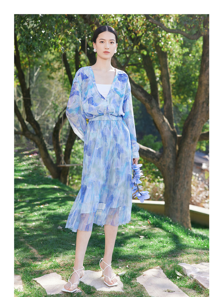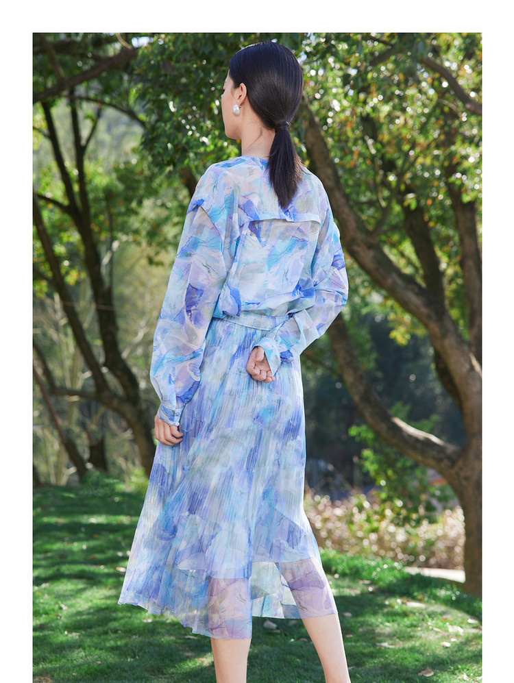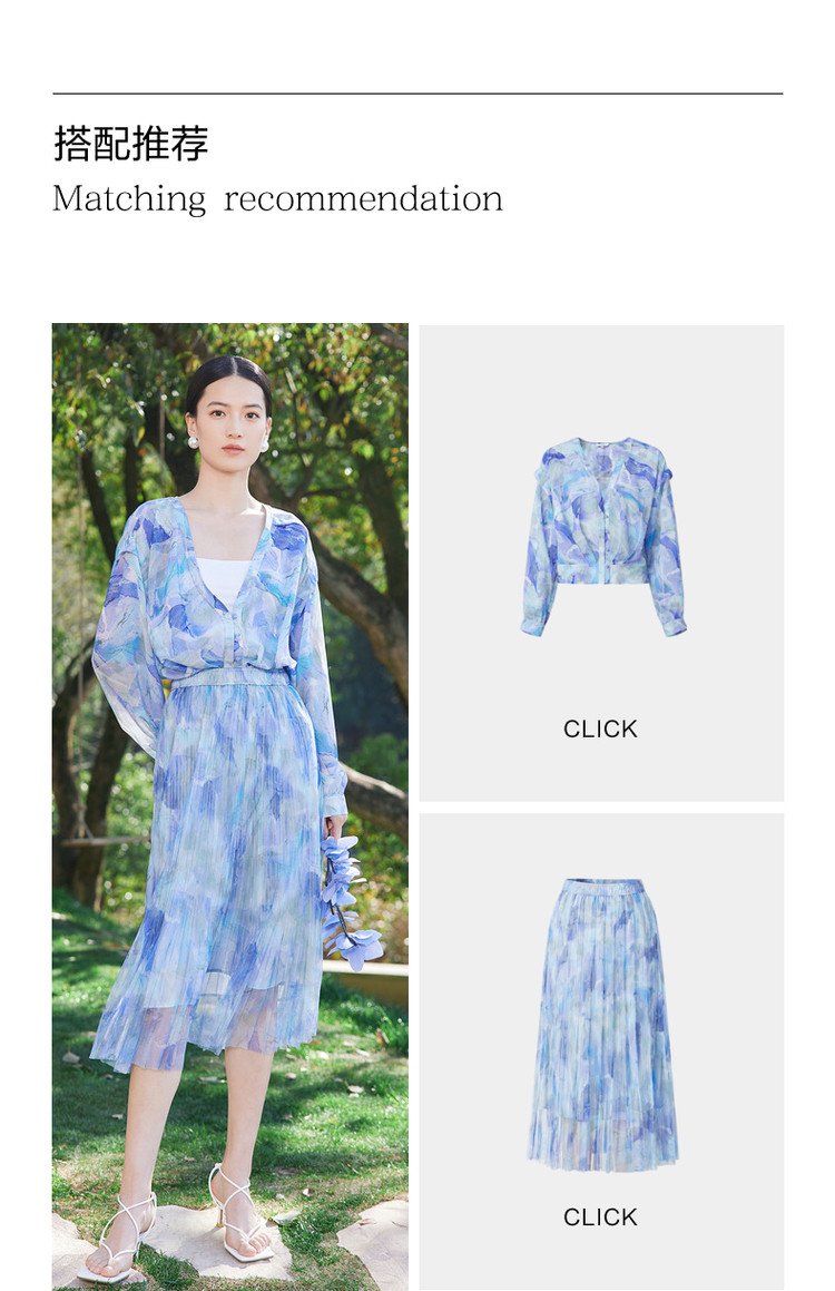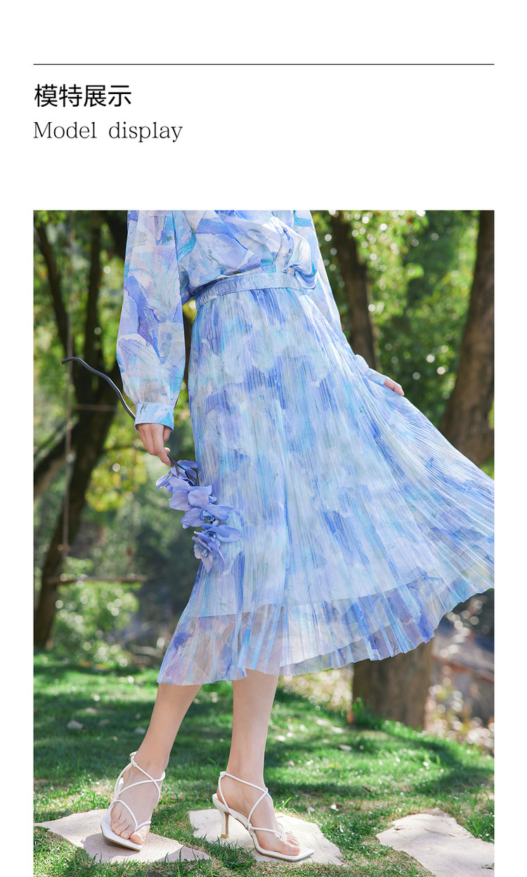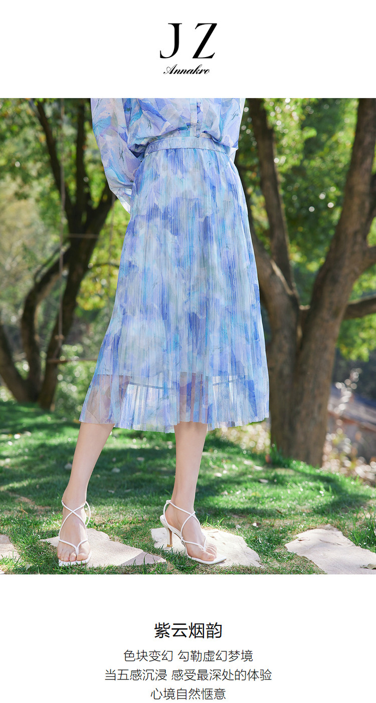 商品名称:玖姿旗下安娜蔻系列网布印花压褶伞裙女装夏季 半身裙 110476