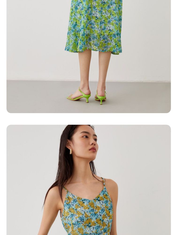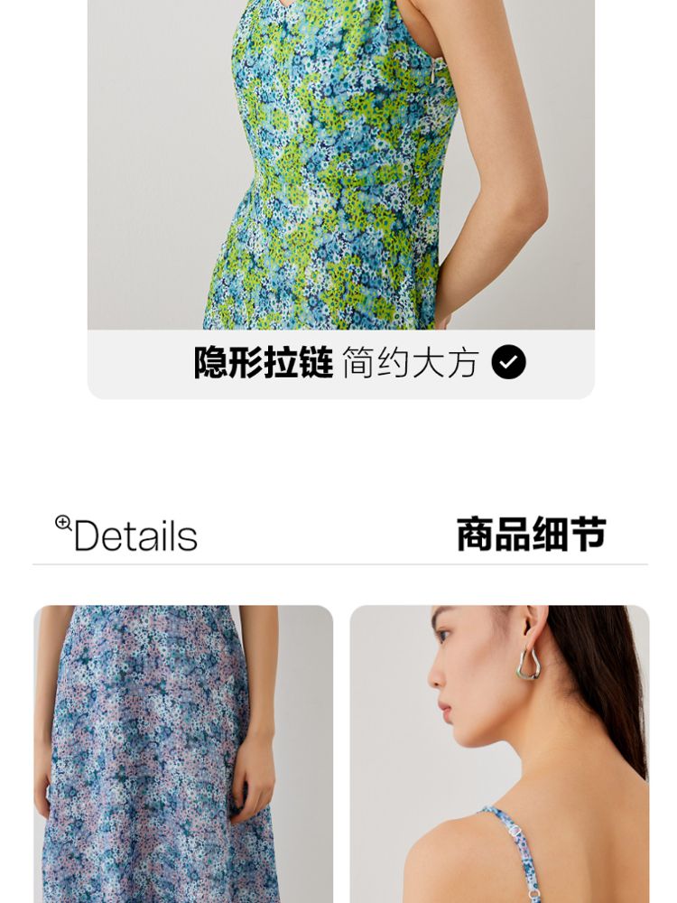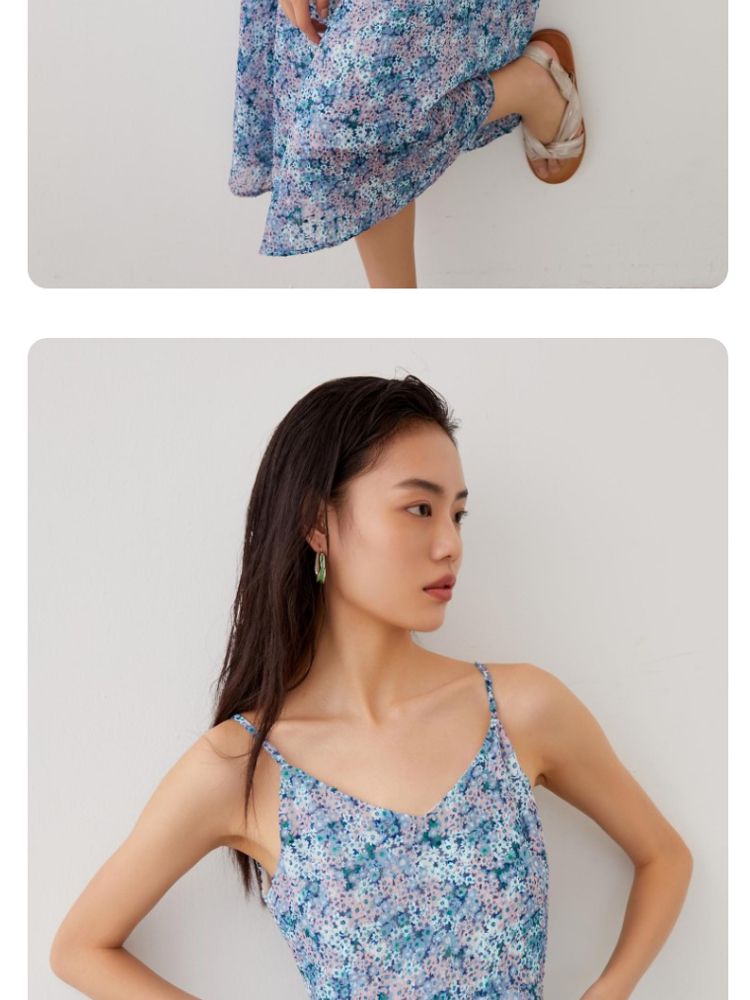 优雅度假碎花吊带中长裙女气质百搭时尚春夏 133969