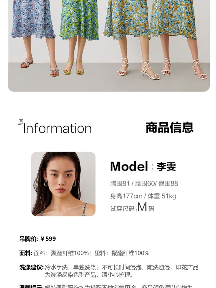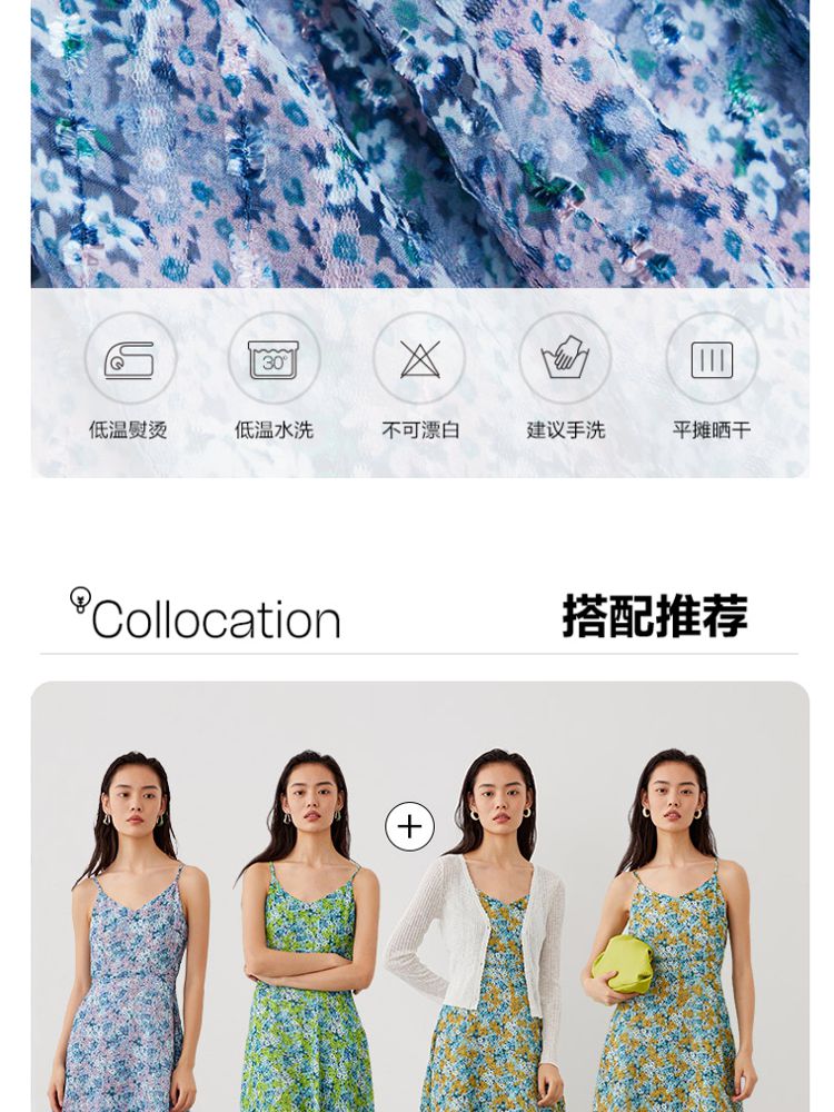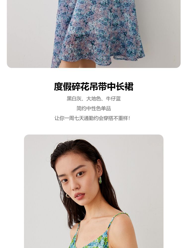 商品名称:优雅度假碎花吊带中长裙女气质百搭时尚春夏 133969