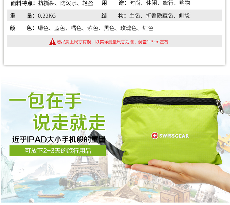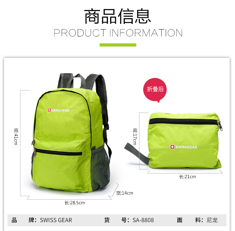 商品名称:瑞士军刀(SWISSGEAR) 折叠包 男女款休闲运动双肩背包旅游包 便携皮肤包 SA-8808