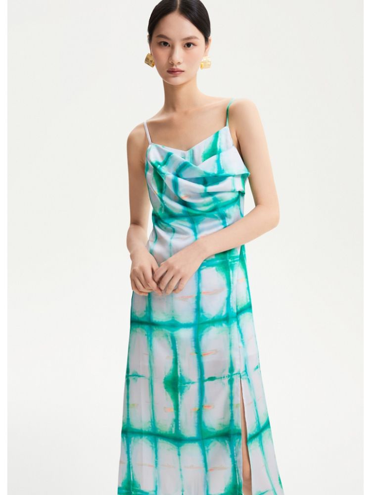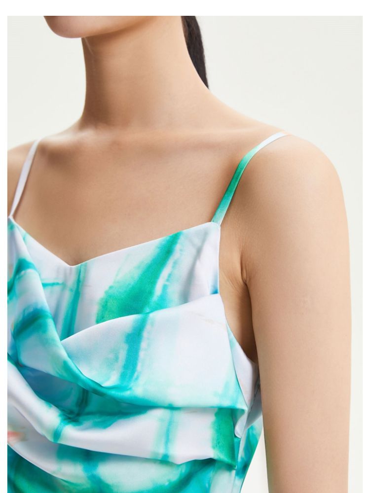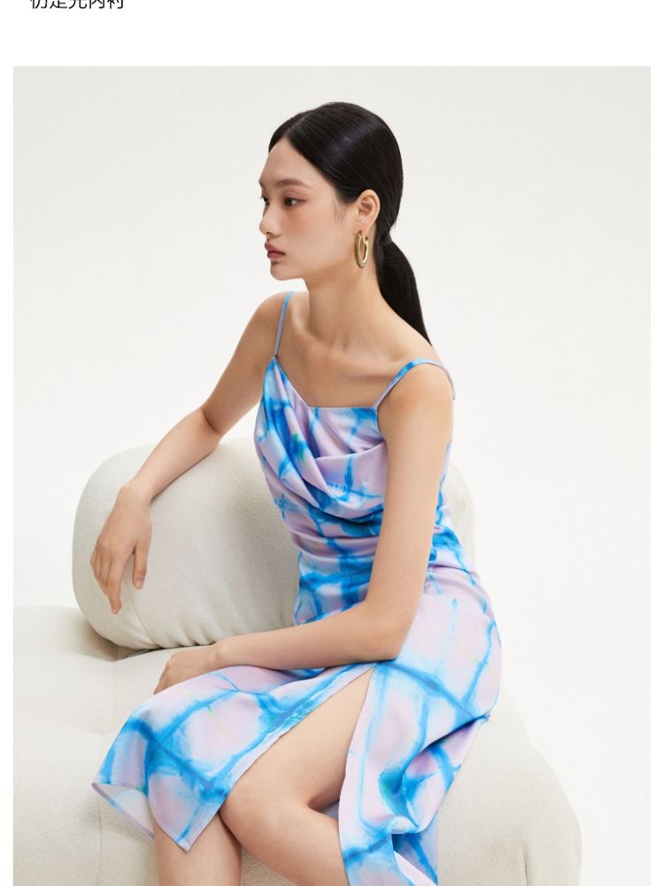 商品名称:【度假风】春夏专柜印花中长裙直筒吊带优雅连衣裙气质百搭时尚 408209