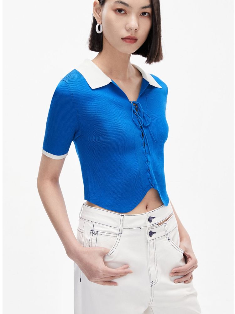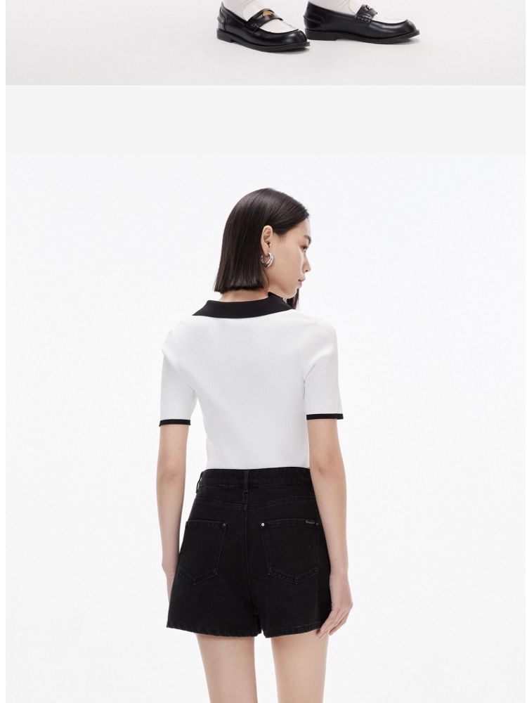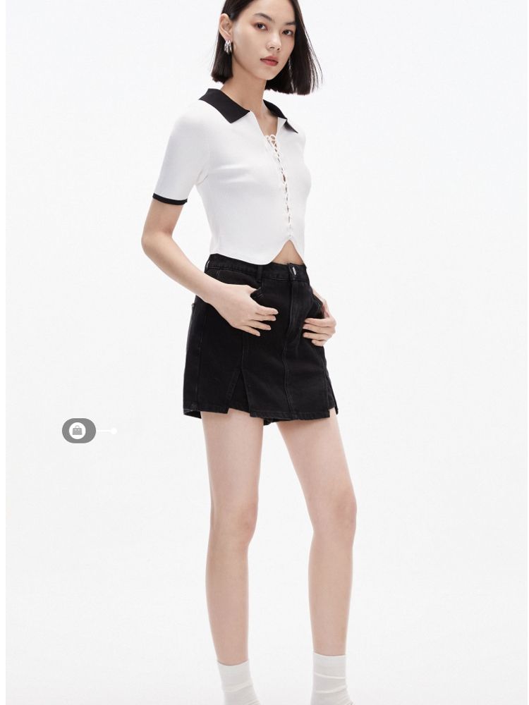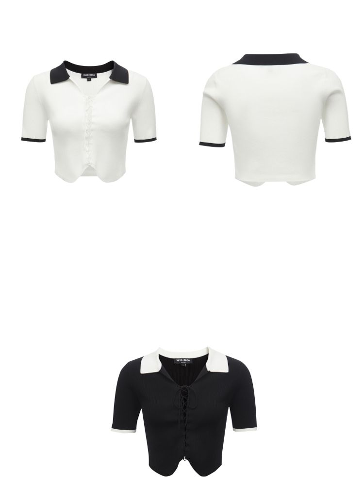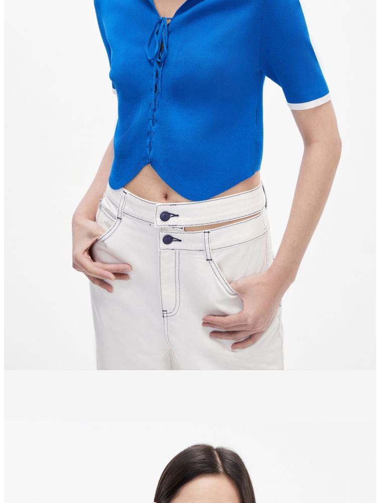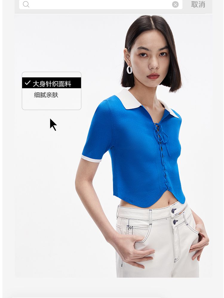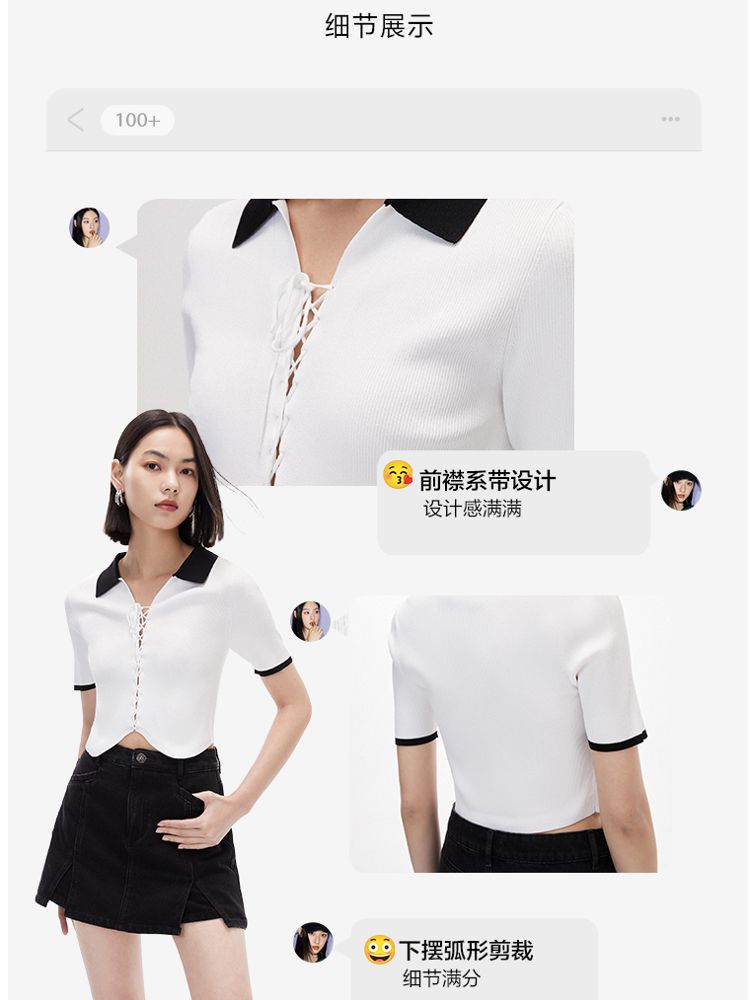 商品名称:针织衫女撞色黑白短款绑带修身百搭 004561