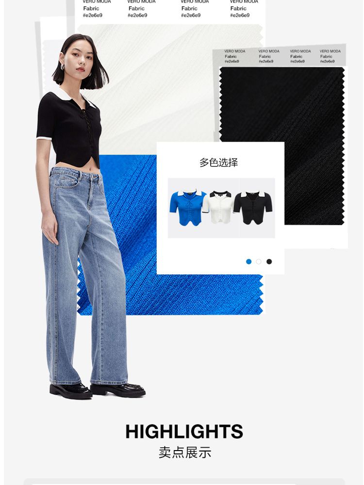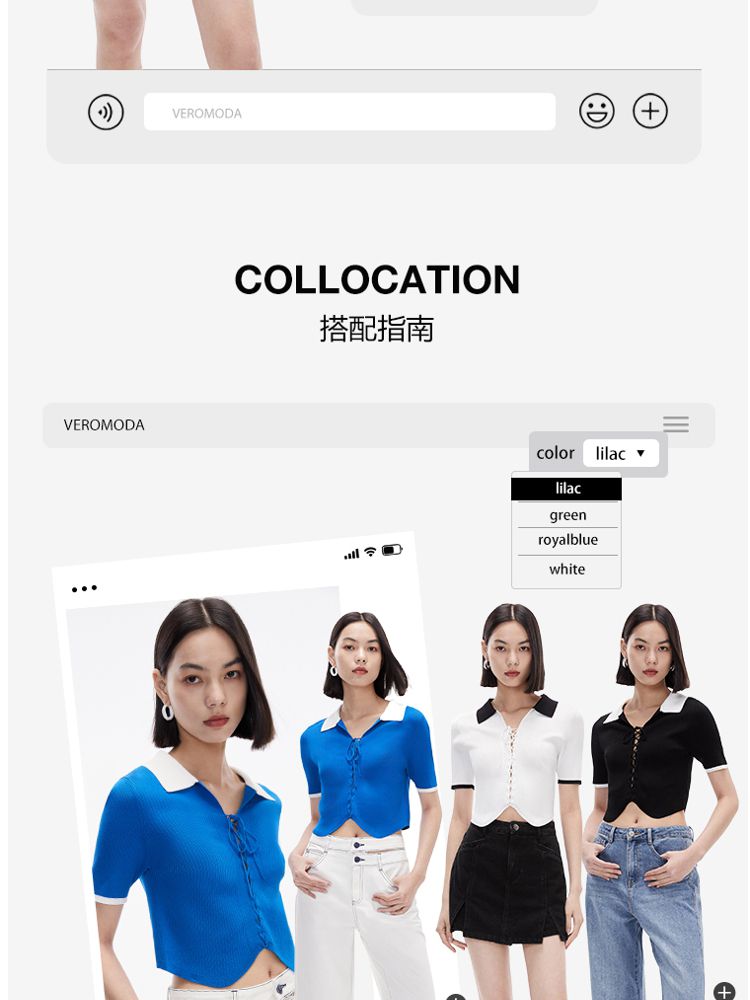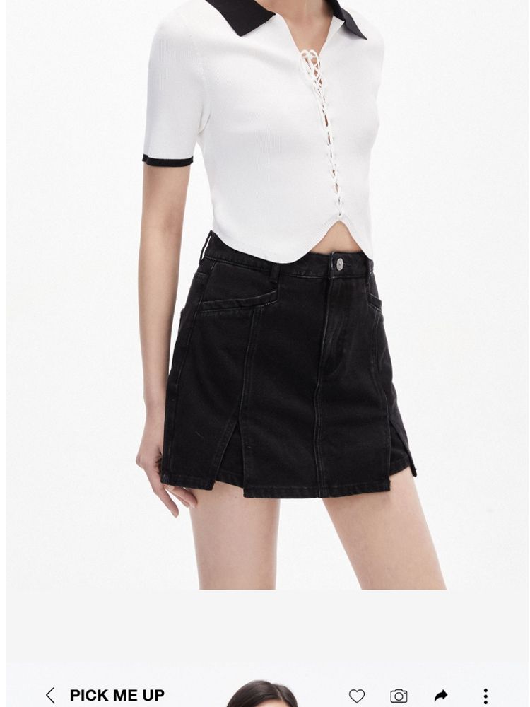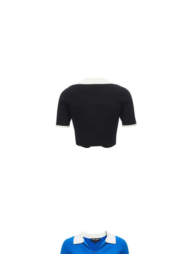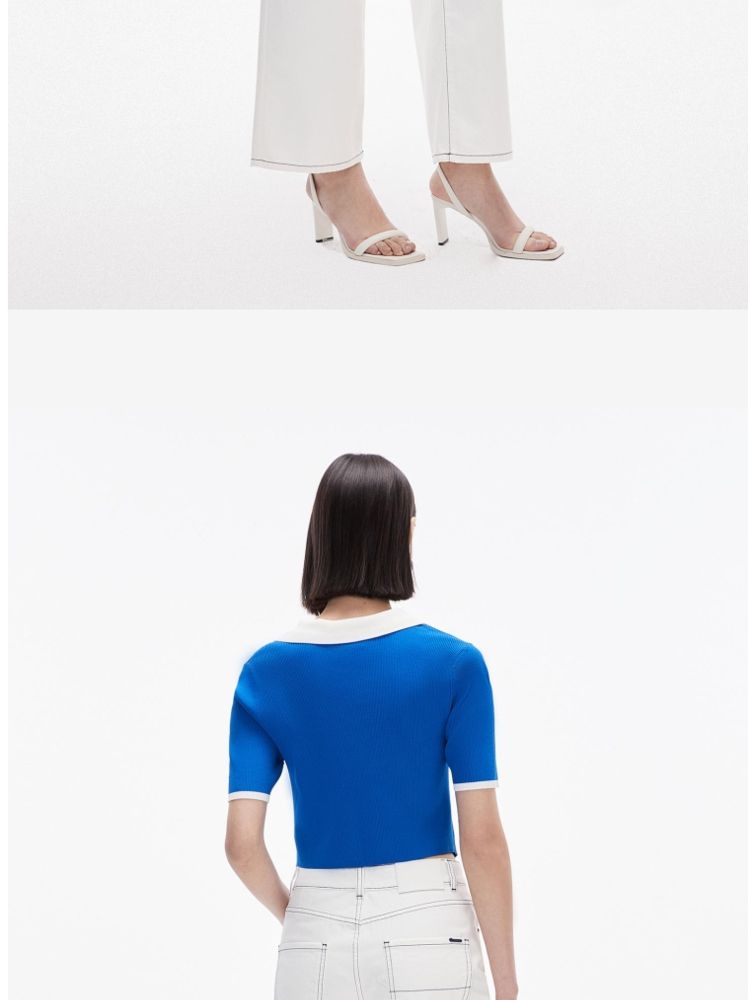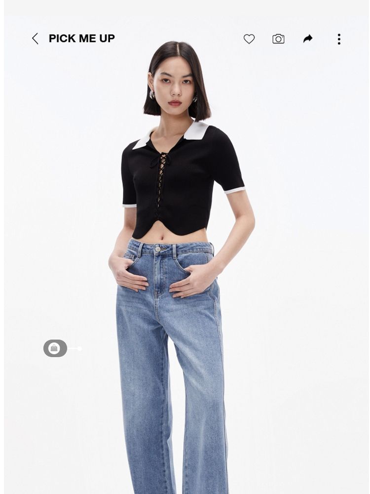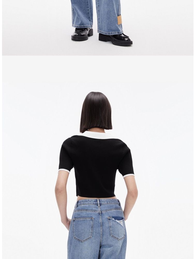 商品名称:针织衫女撞色黑白短款绑带修身百搭 004561