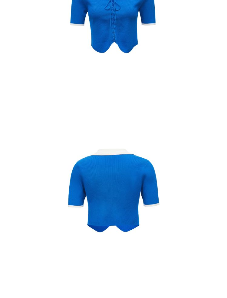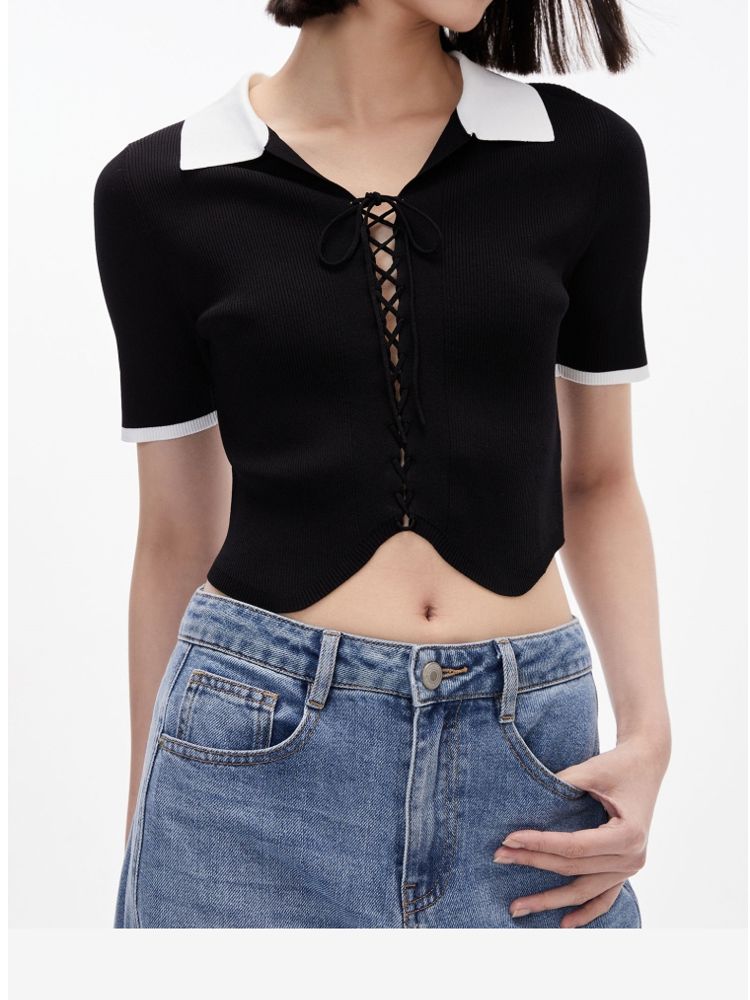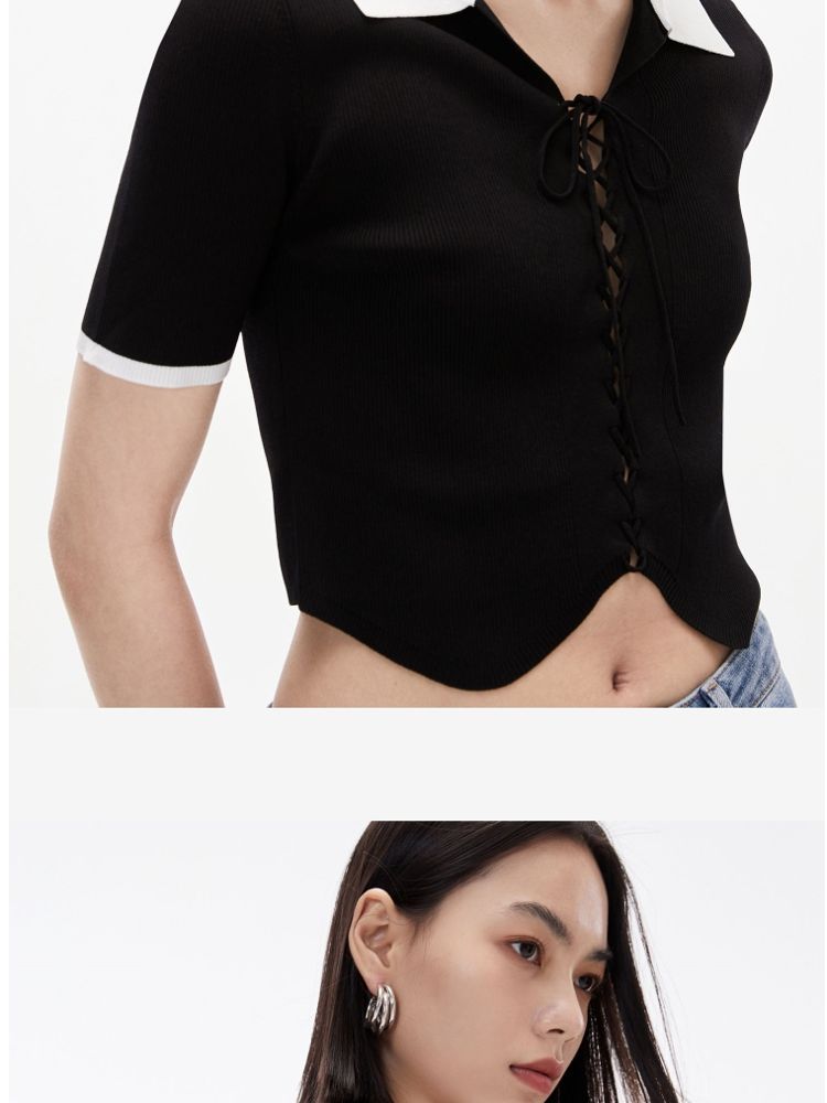 针织衫女撞色黑白短款绑带修身百搭 004561
