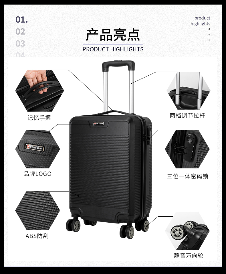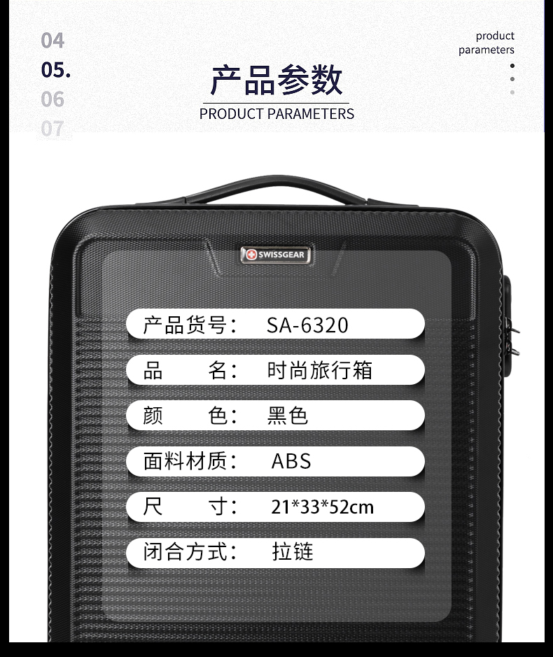 商品名称:瑞士军刀(SWISSGEAR)休闲旅行商务拉杆箱SA-6320黑色-20寸