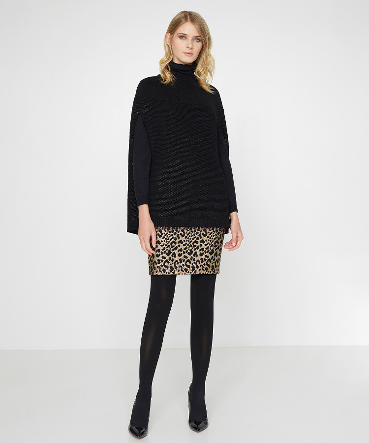 宝姿女装春季简约撞色豹纹印花半身裙 872138